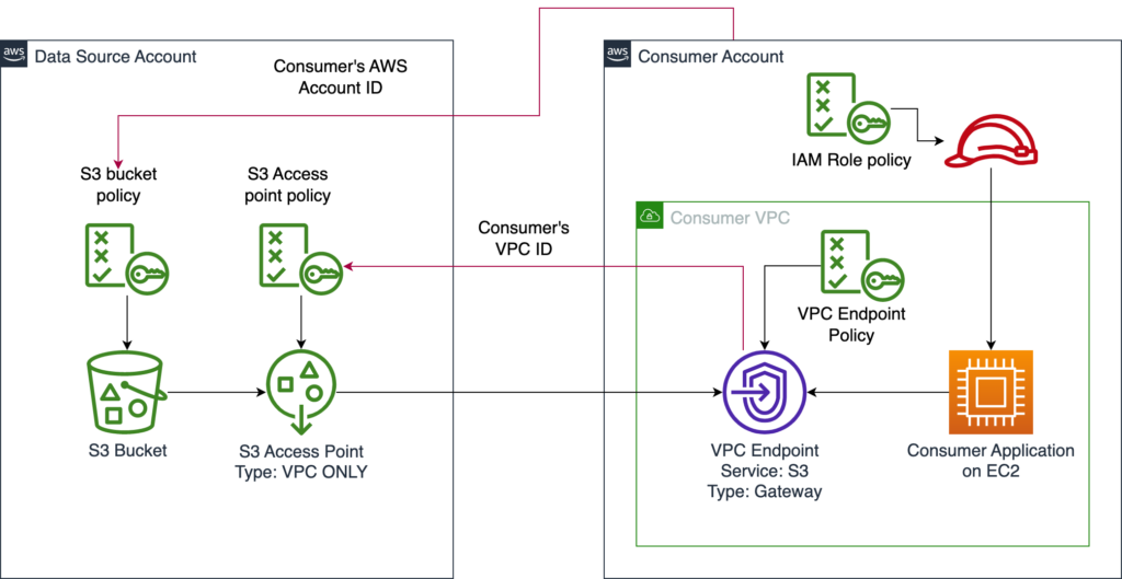 在某些场景下,还需要提供S3跨账号访问服务,那么可在上一步的基础上,为S3存储桶策略和S3 Access Point策略分别增加跨账号授权。