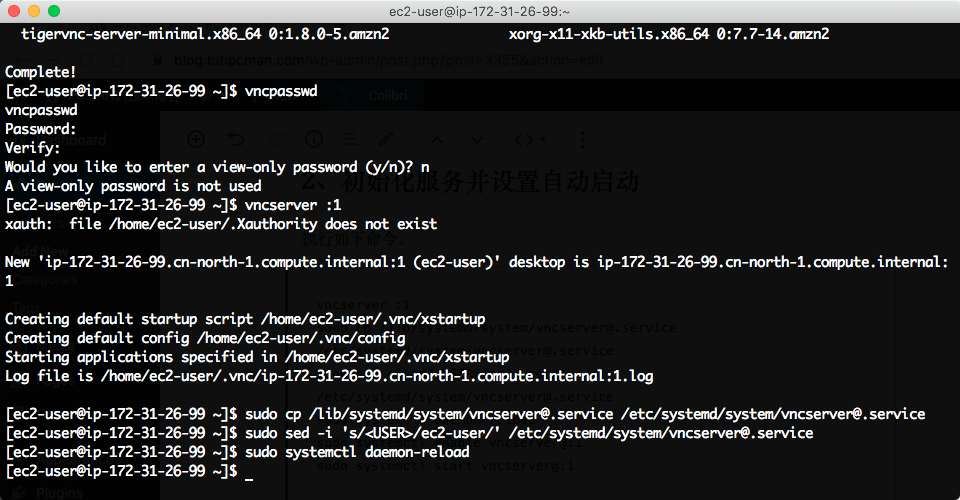 sudo sed -i 's/<USER>/ec2-user/' /etc/systemd/system/vncserver@.service