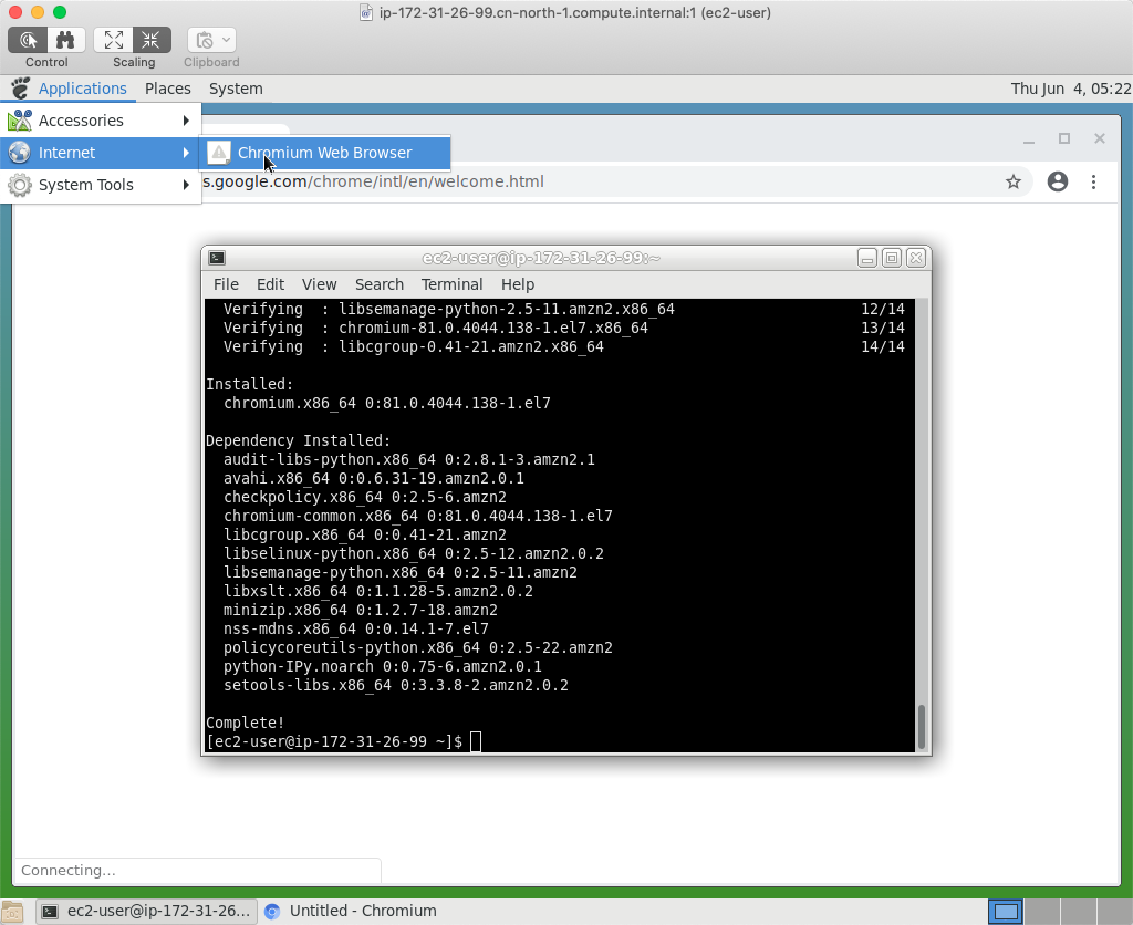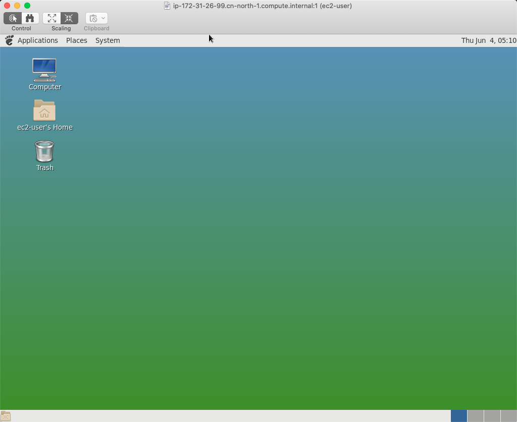 替换EC2的ID(从EC2界面查看),替换Reigon区域,替换端口号,然后用VNC软件连接本机的56789端口,即可连接到VNC。