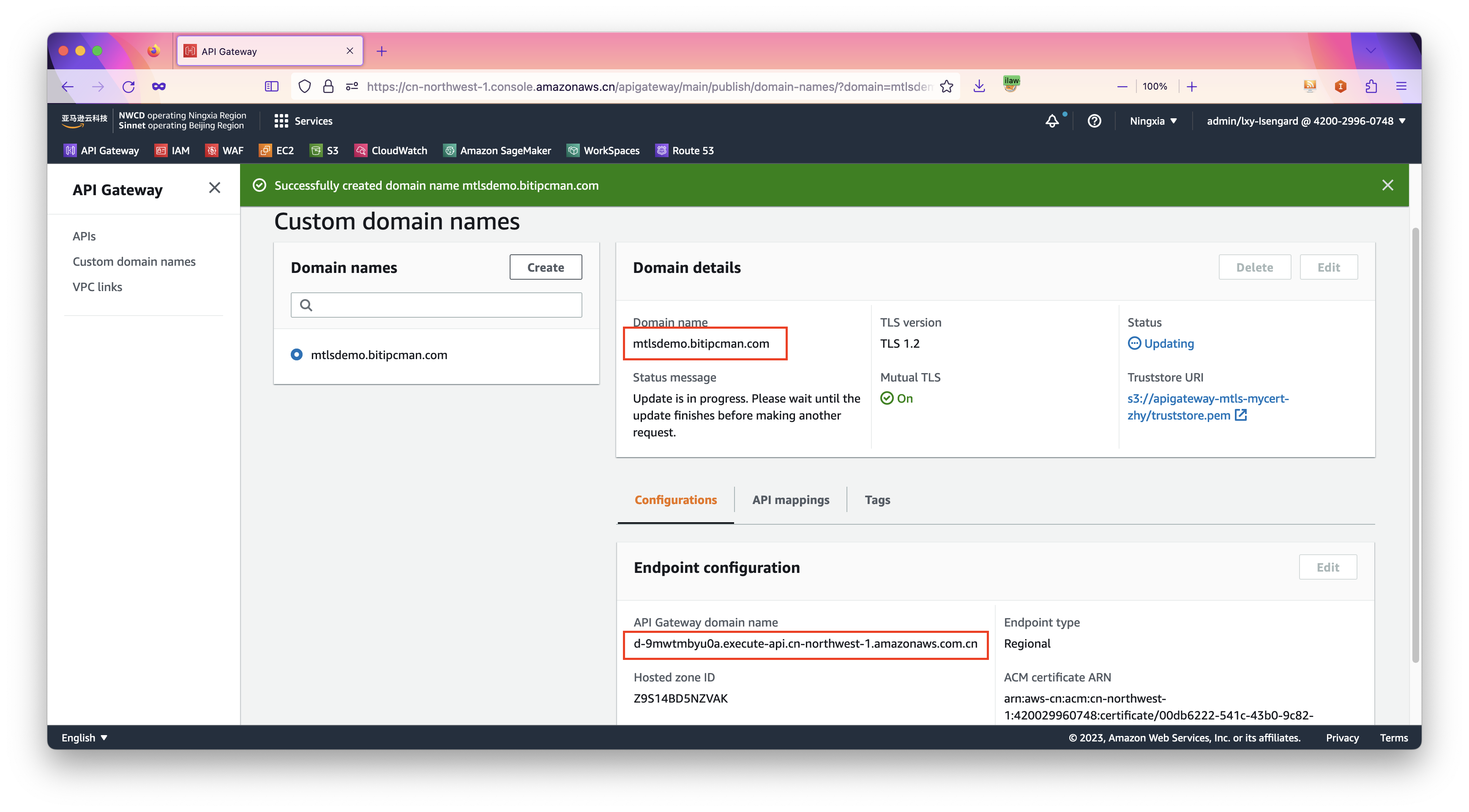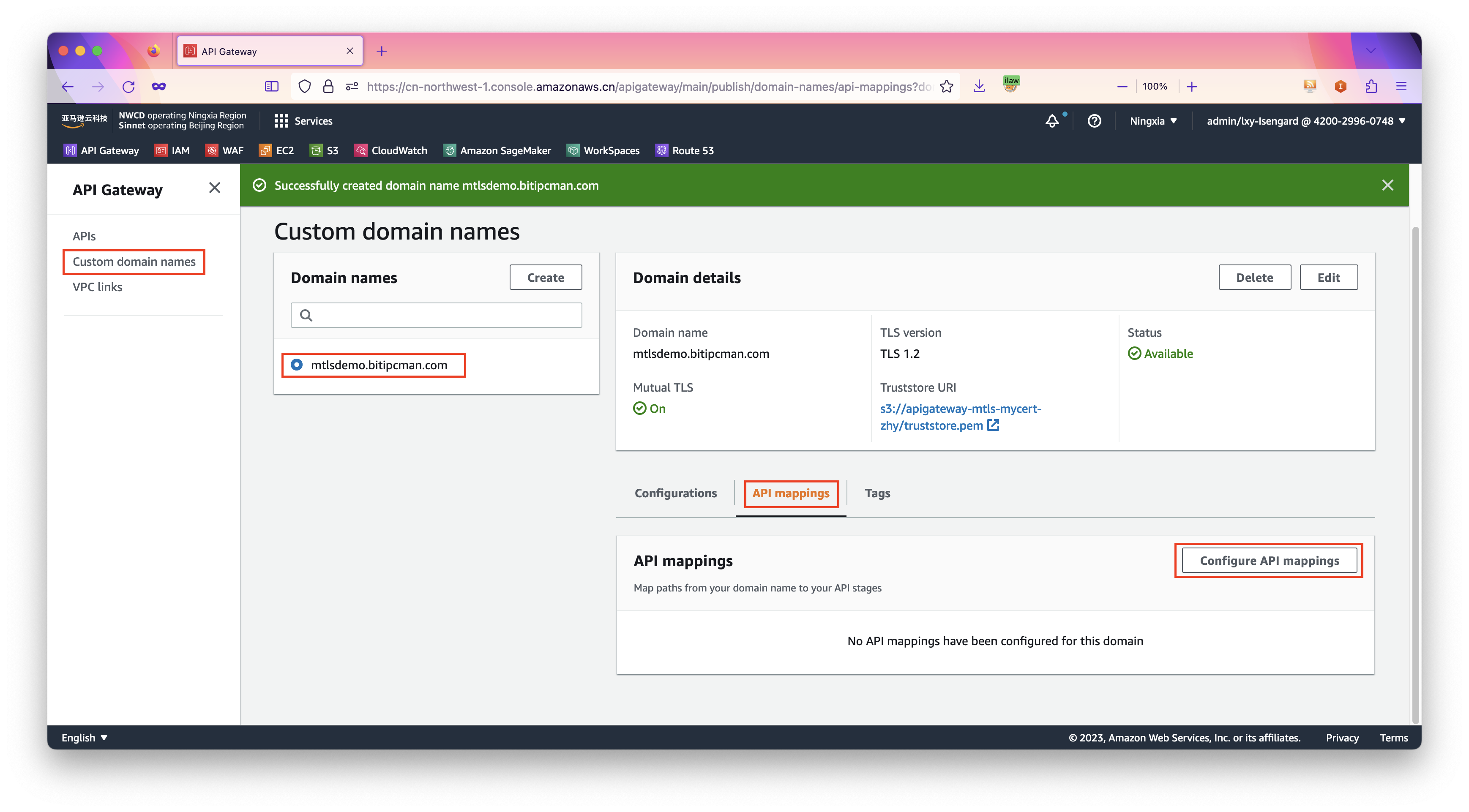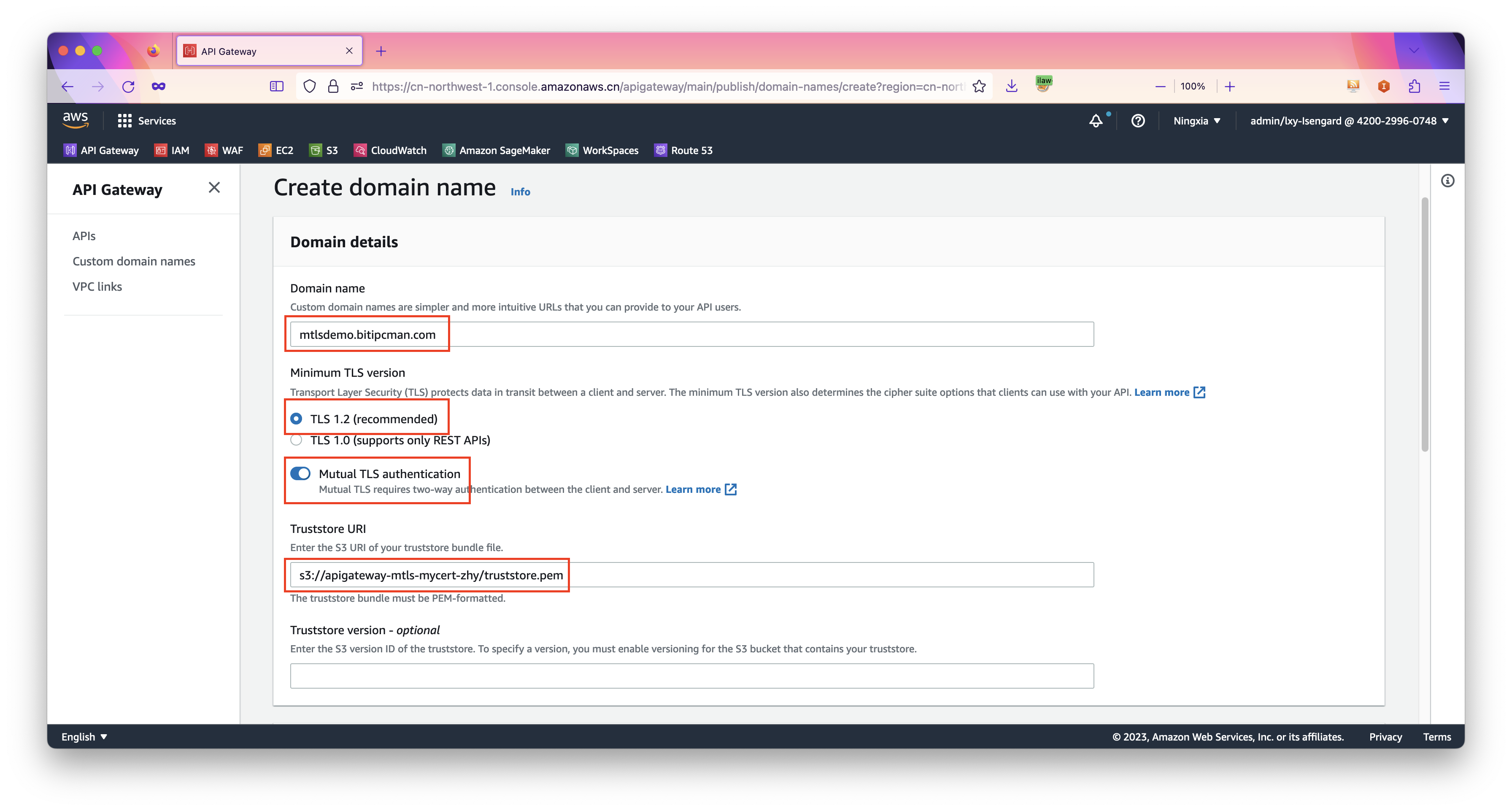 2、为API Gateway设置设置自定义域名和mTLS