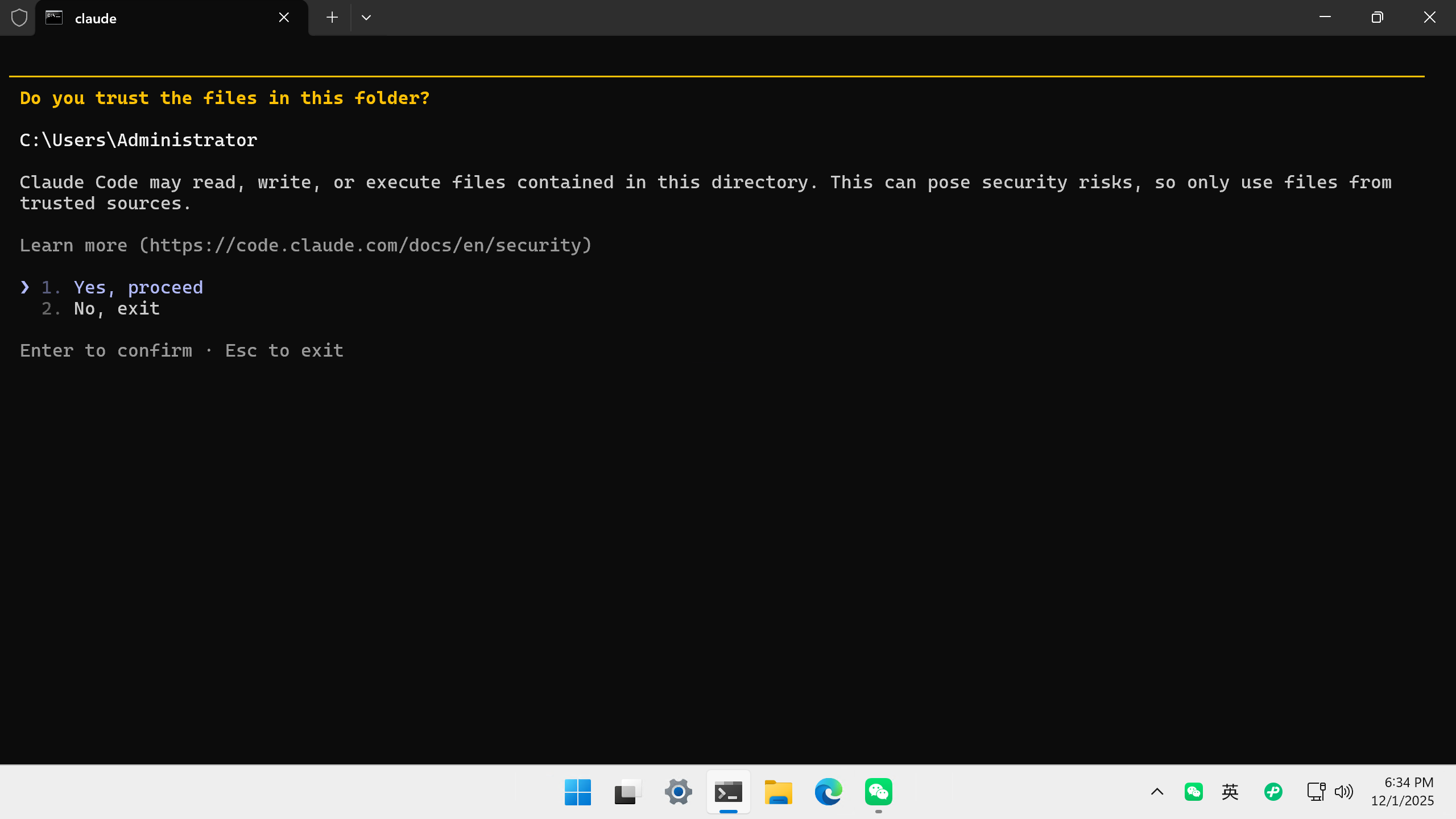 在安全确认选项按回车继续。