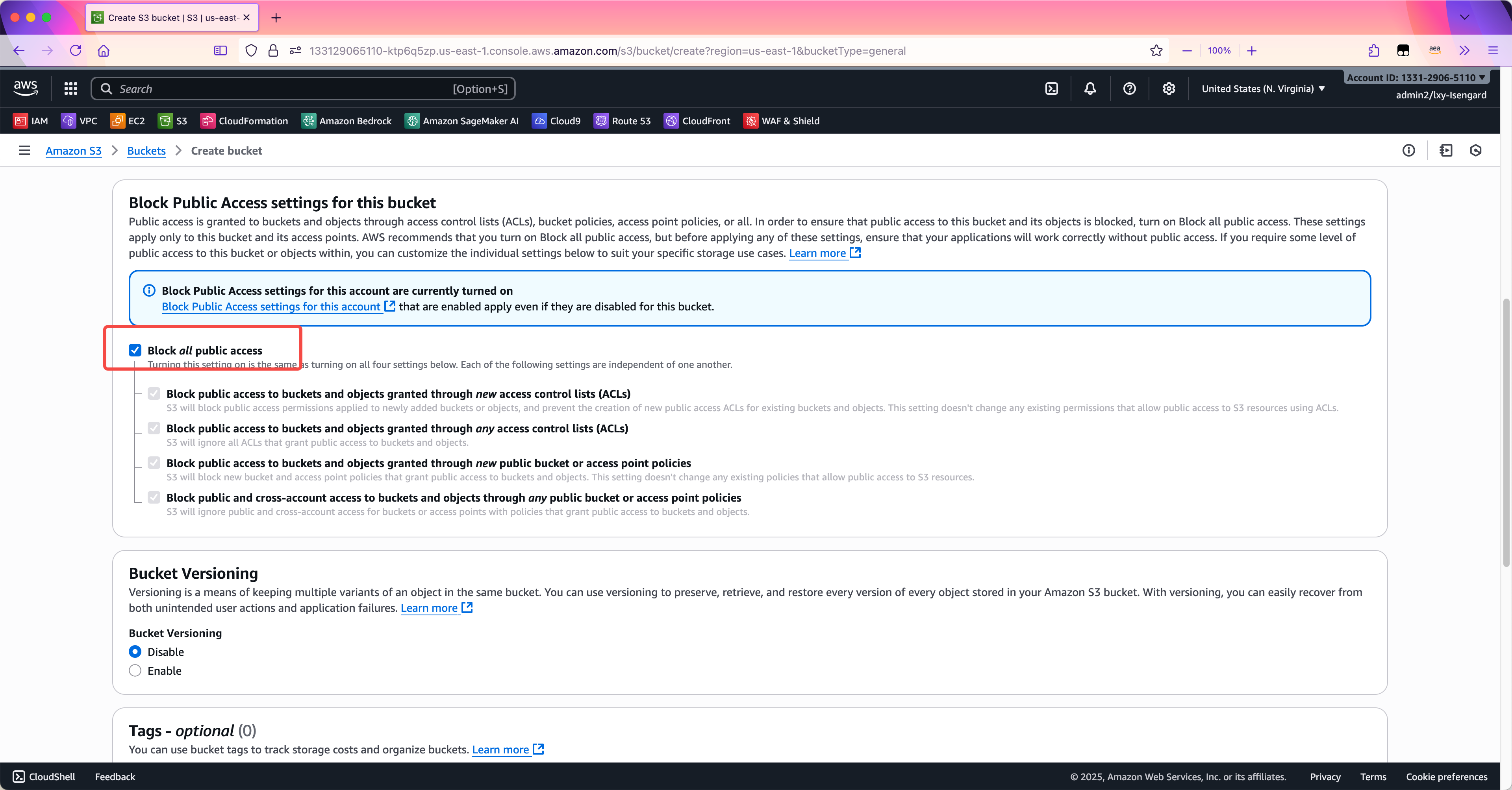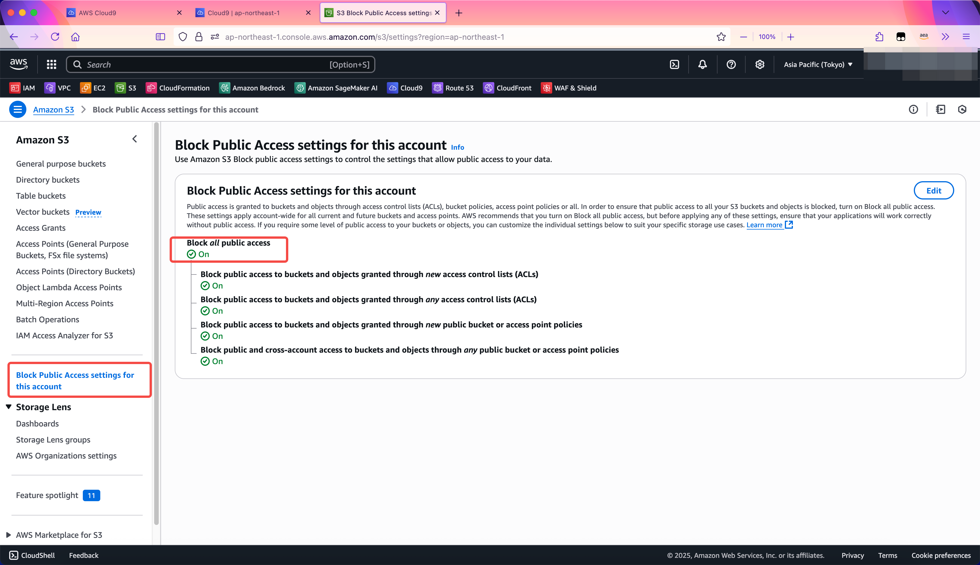 大部分企业的安全管理团队会要求将本AWS账号的S3全局设置Block public access