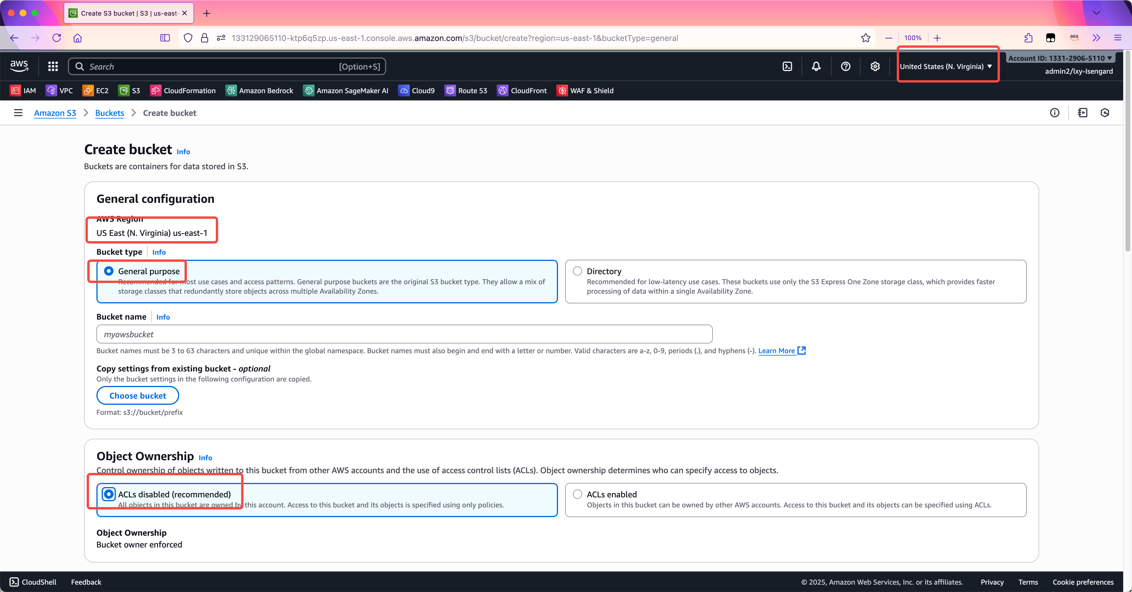 正常创建S3存储桶,在创建向导页面,所有类型都是用默认设置。取名时候可以任意取名,这里不需要向使用S3提供静态网站一样,对S3存储桶名字有特定命名规范的要求。这里可以任意选用名字。例如使用my-s3-static-hosting-demo-01