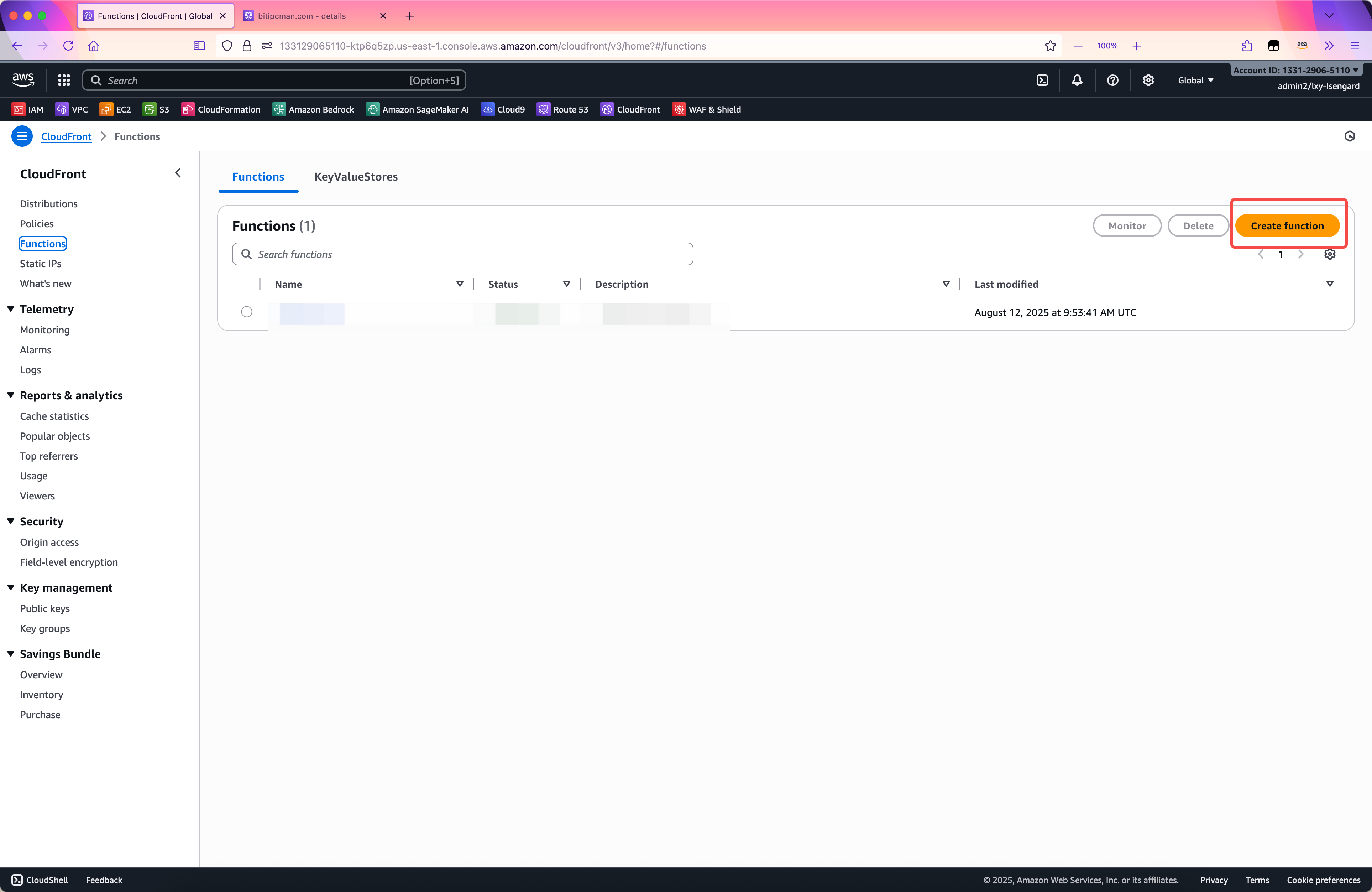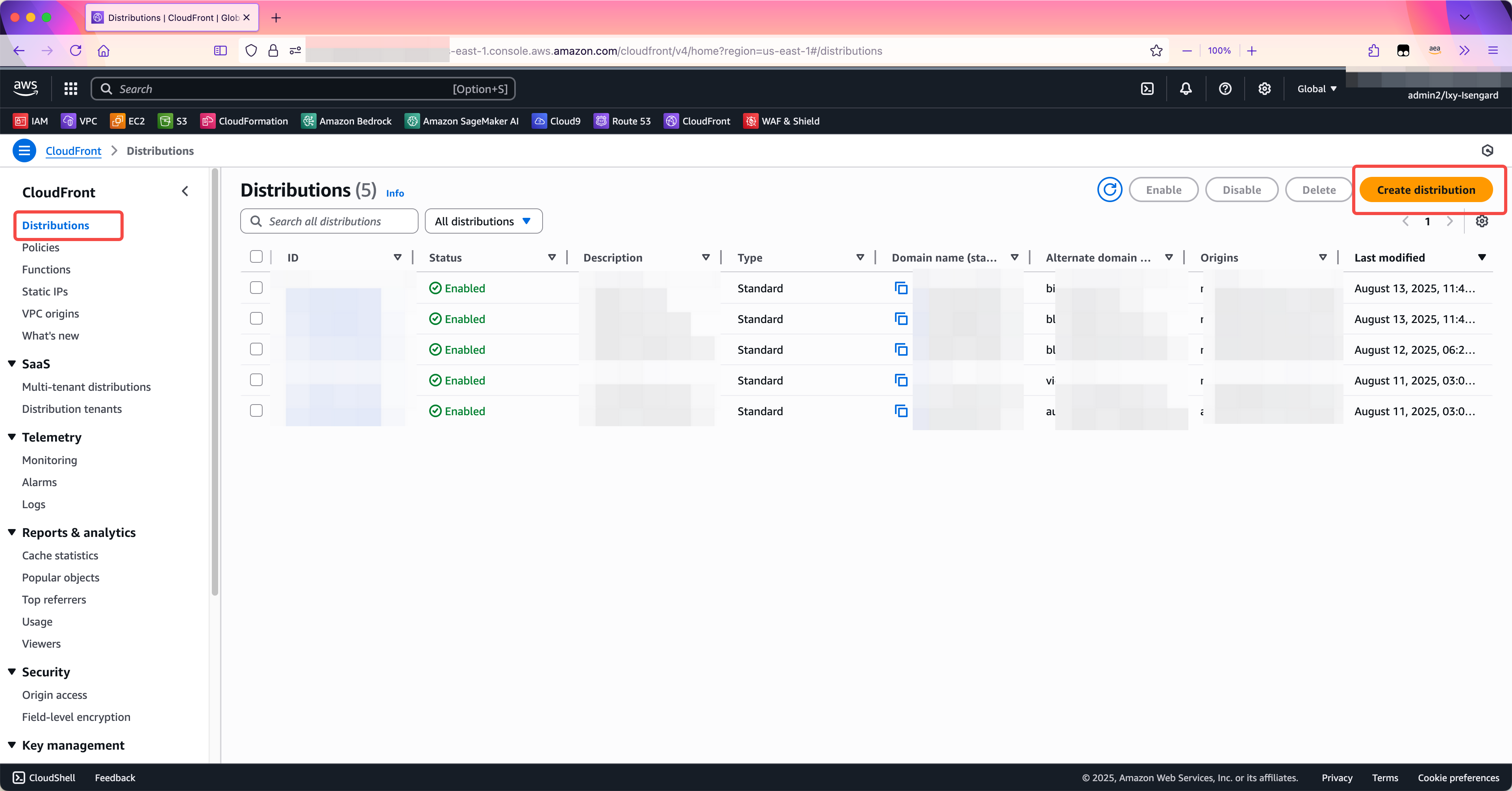 现在进入CloudFront服务,创建发布点。从2025年起,CloudFront控制台发布了新版本UI交互界面,本文以新界面进行介绍。