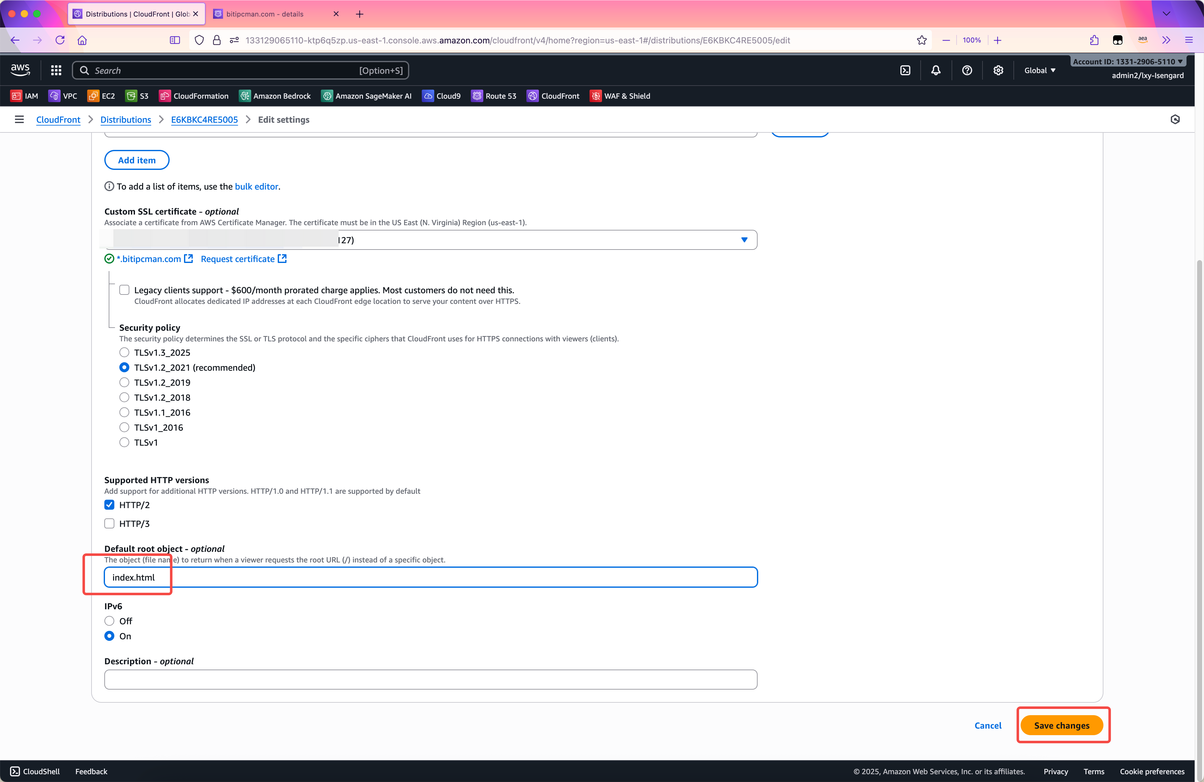 ,CloudFront都是无法感知的。因此需要为CloudFront设置默认页。