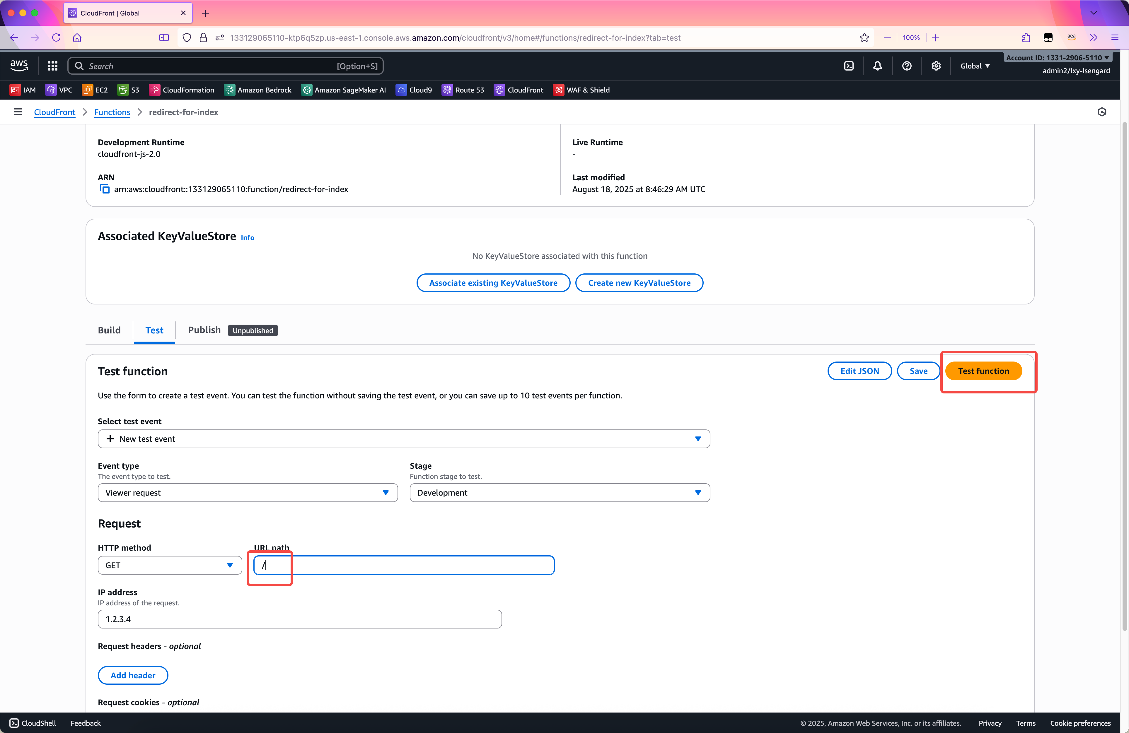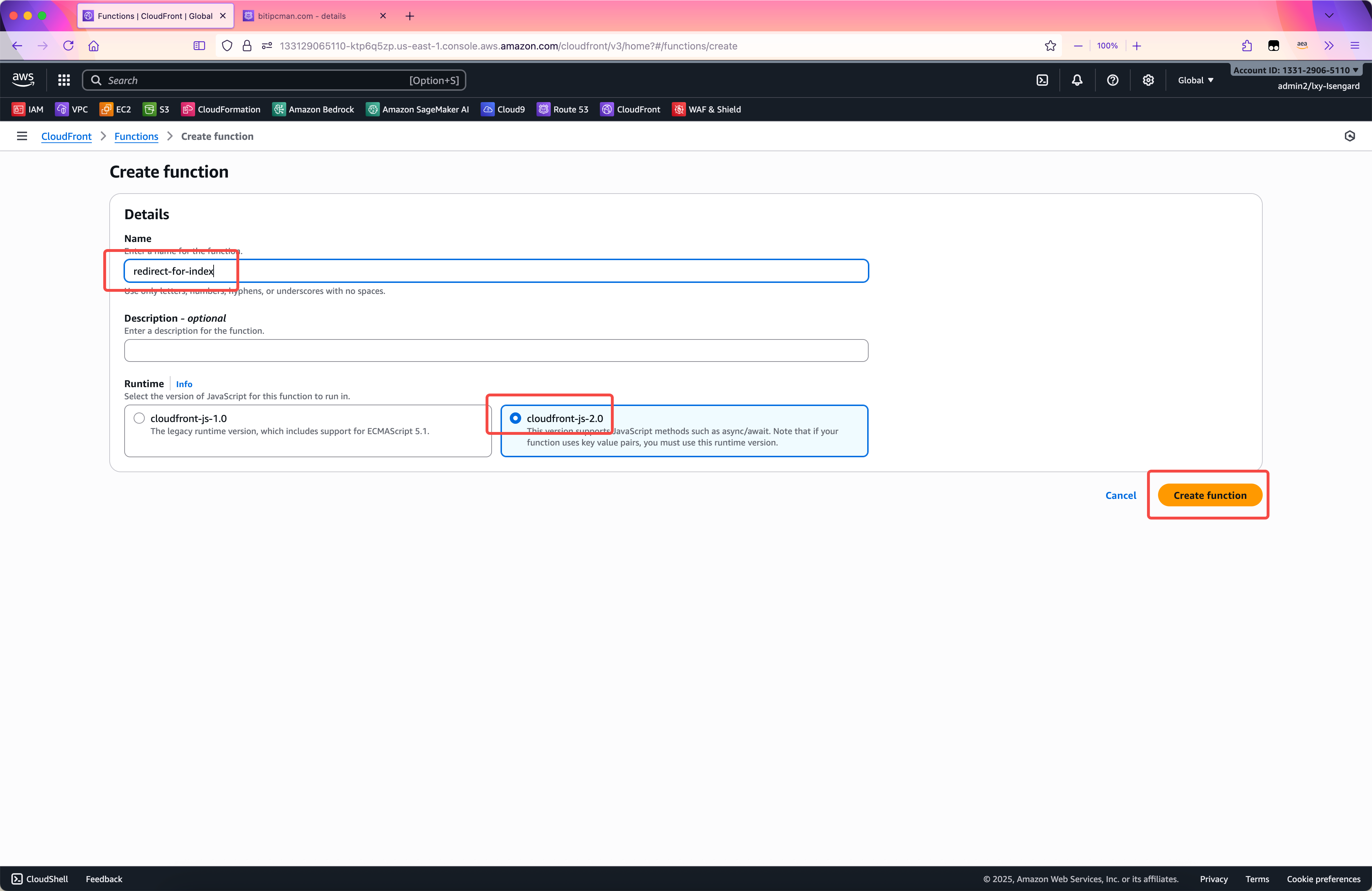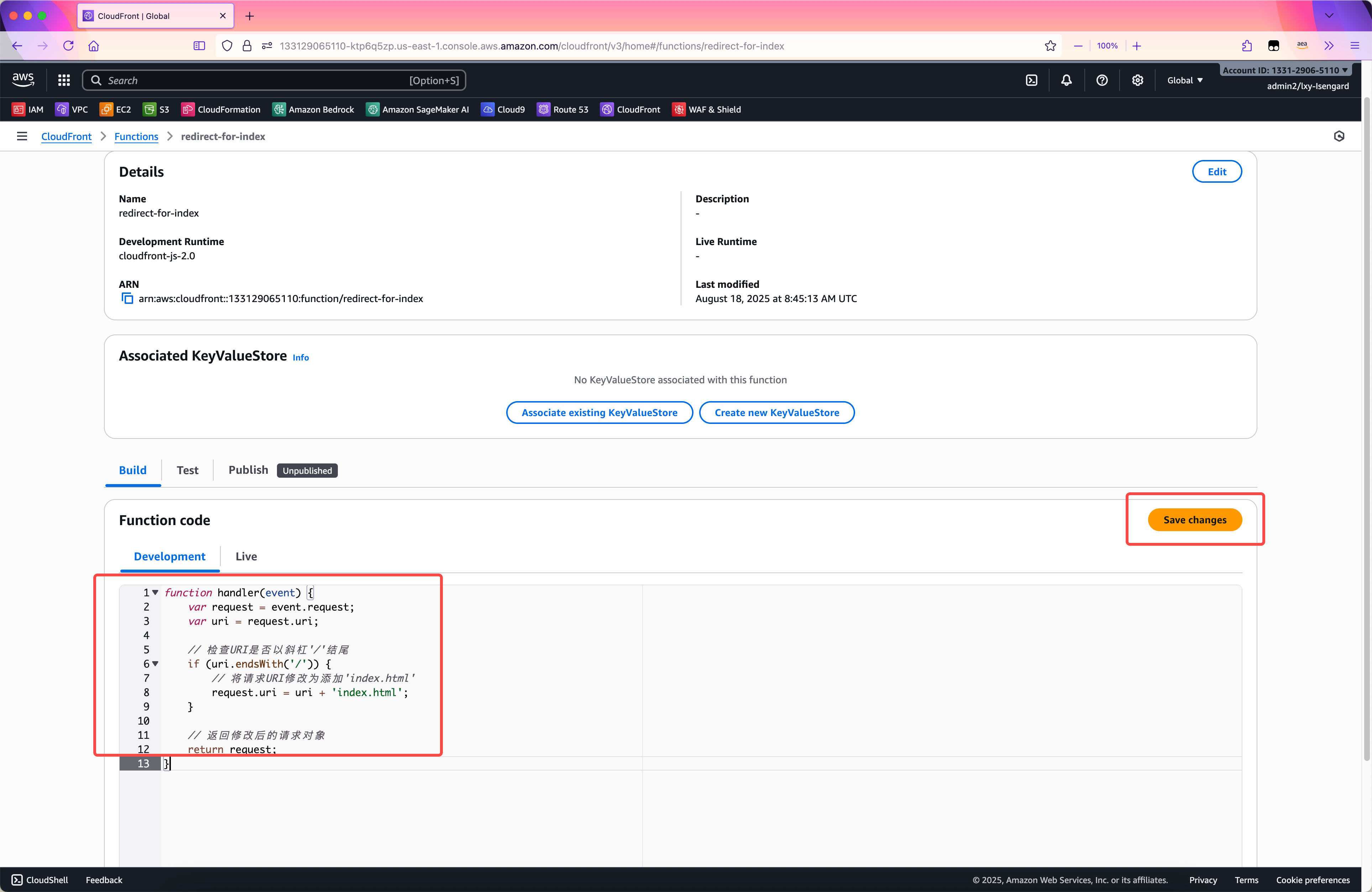 5、创建CloudFront Function函数实现子目录的默认页跳转