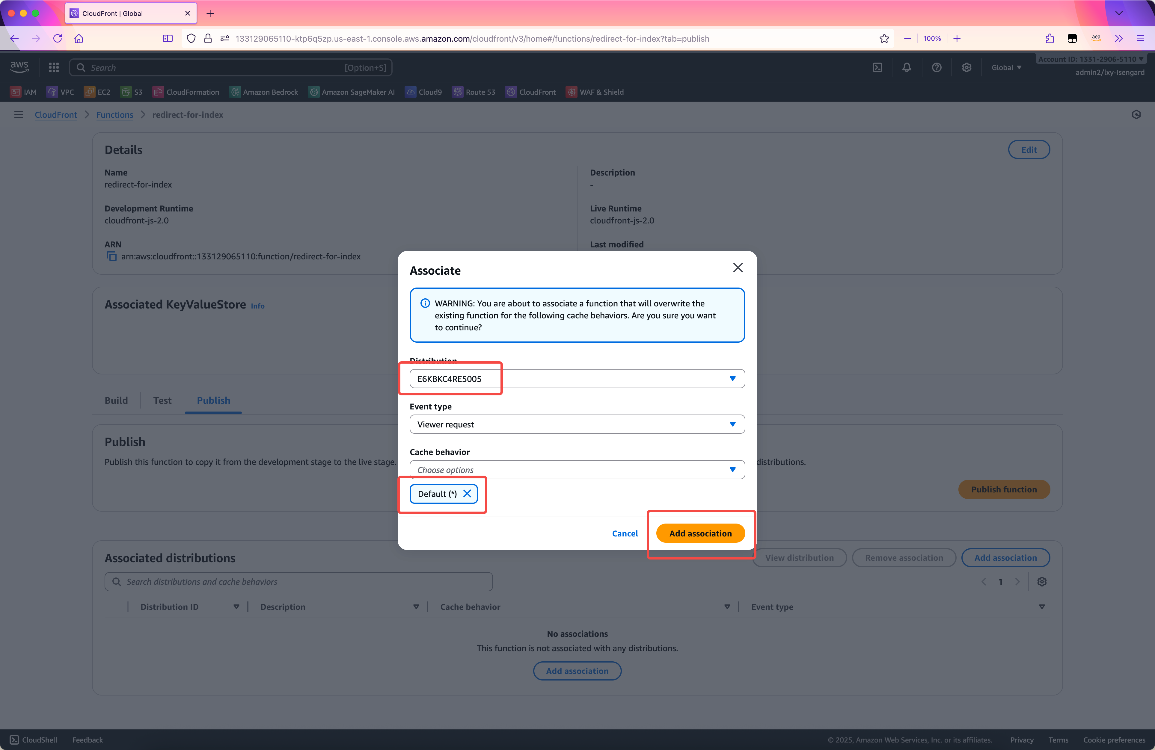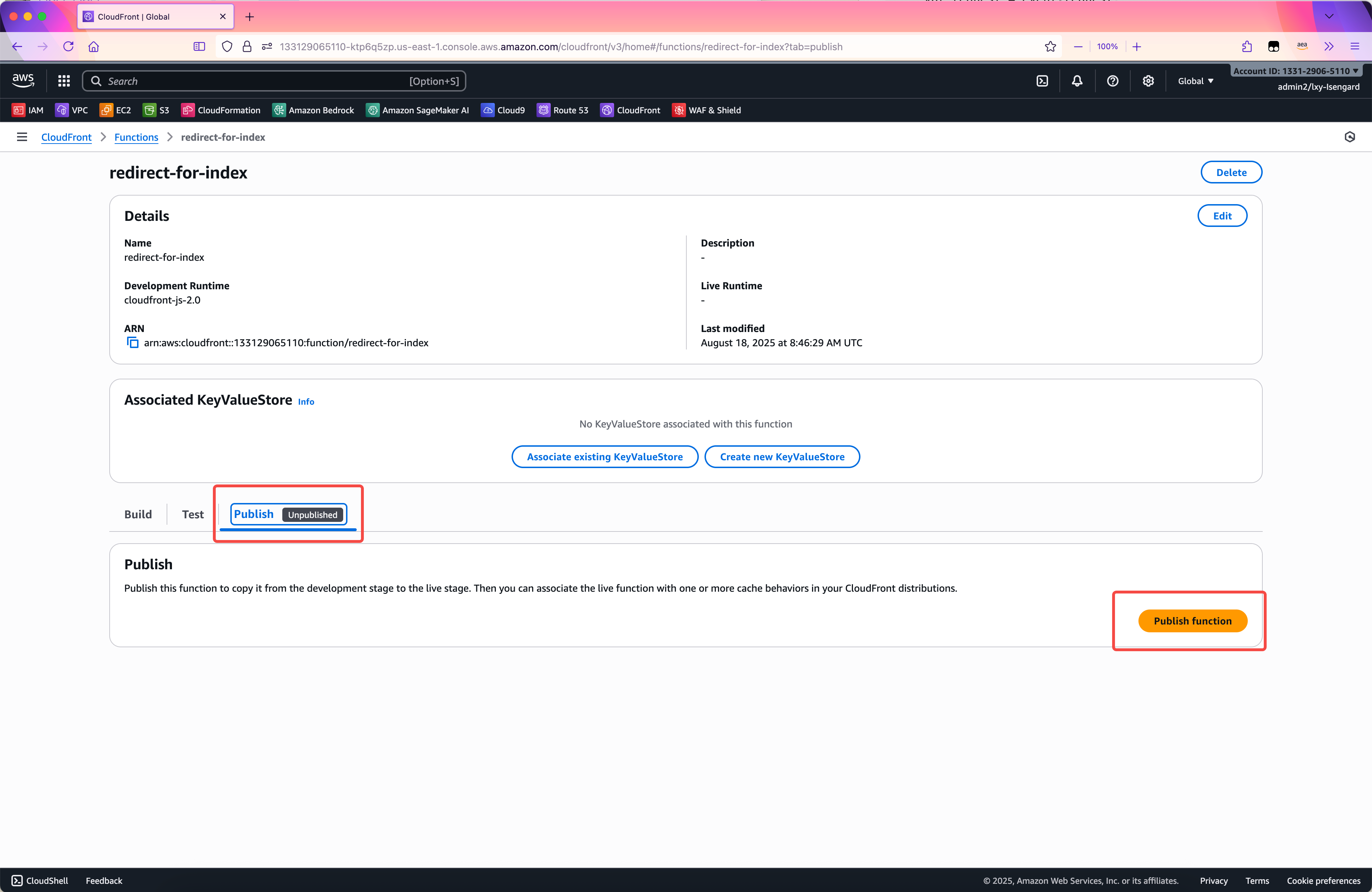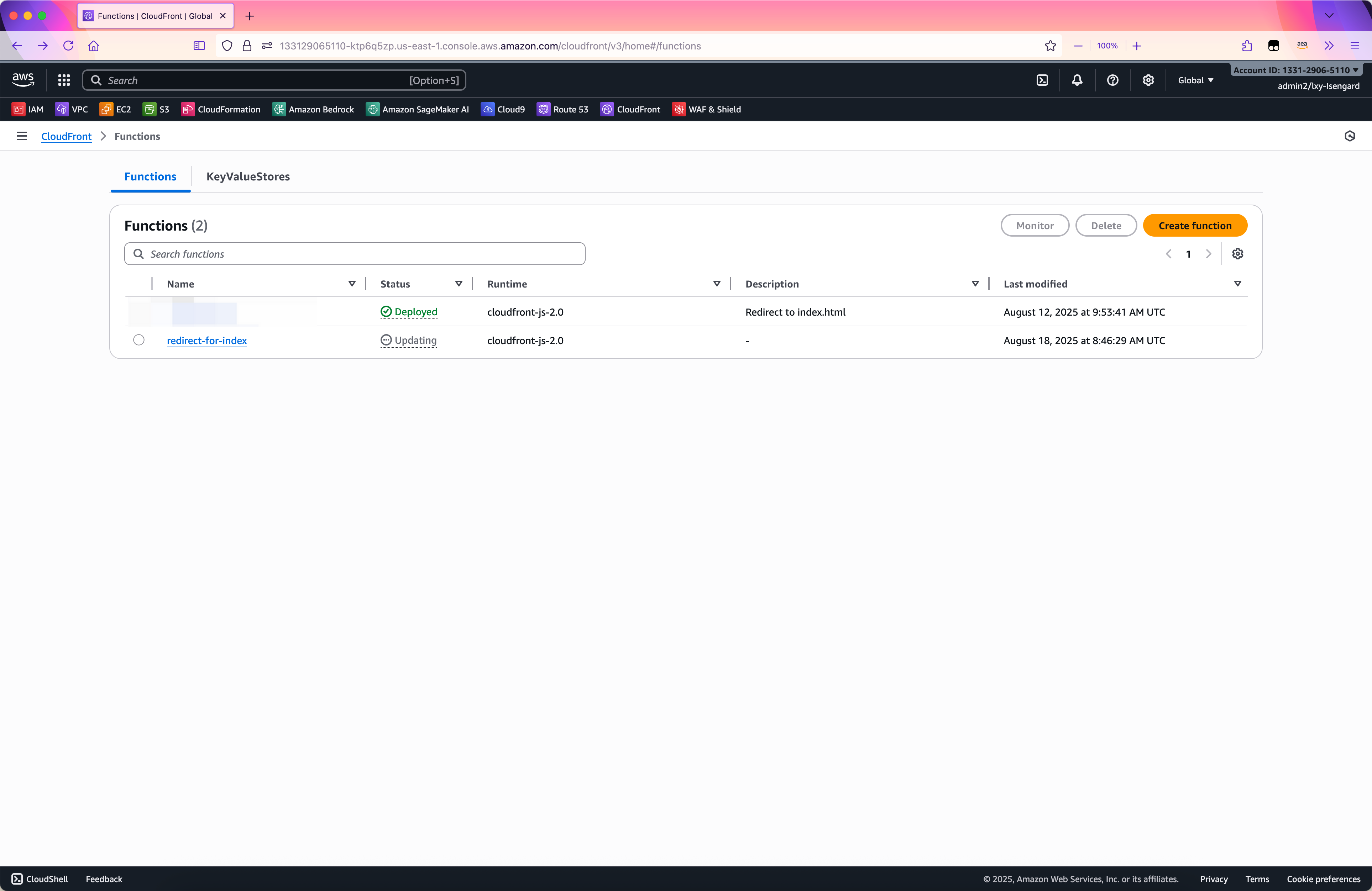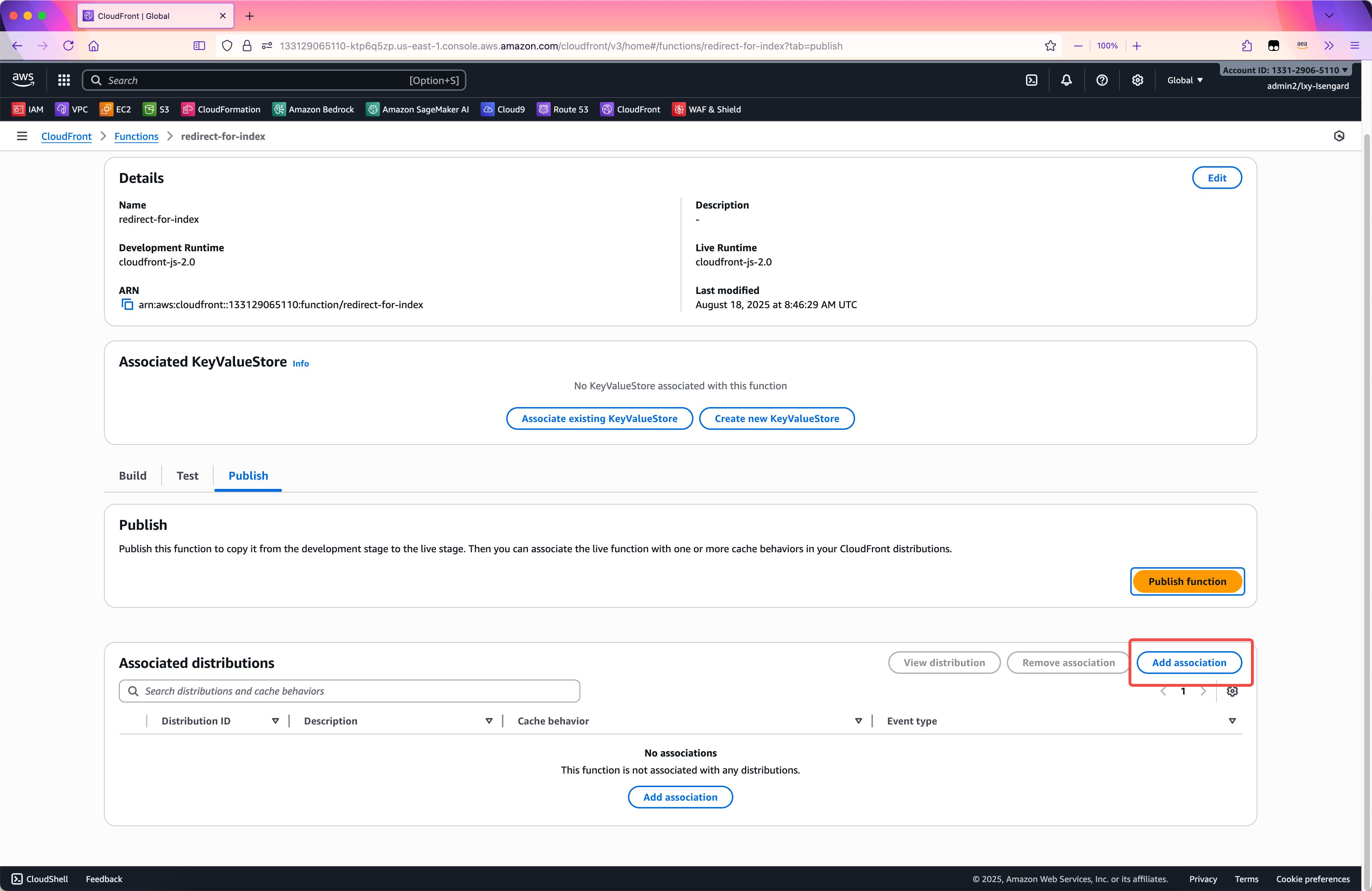 5、创建CloudFront Function函数实现子目录的默认页跳转