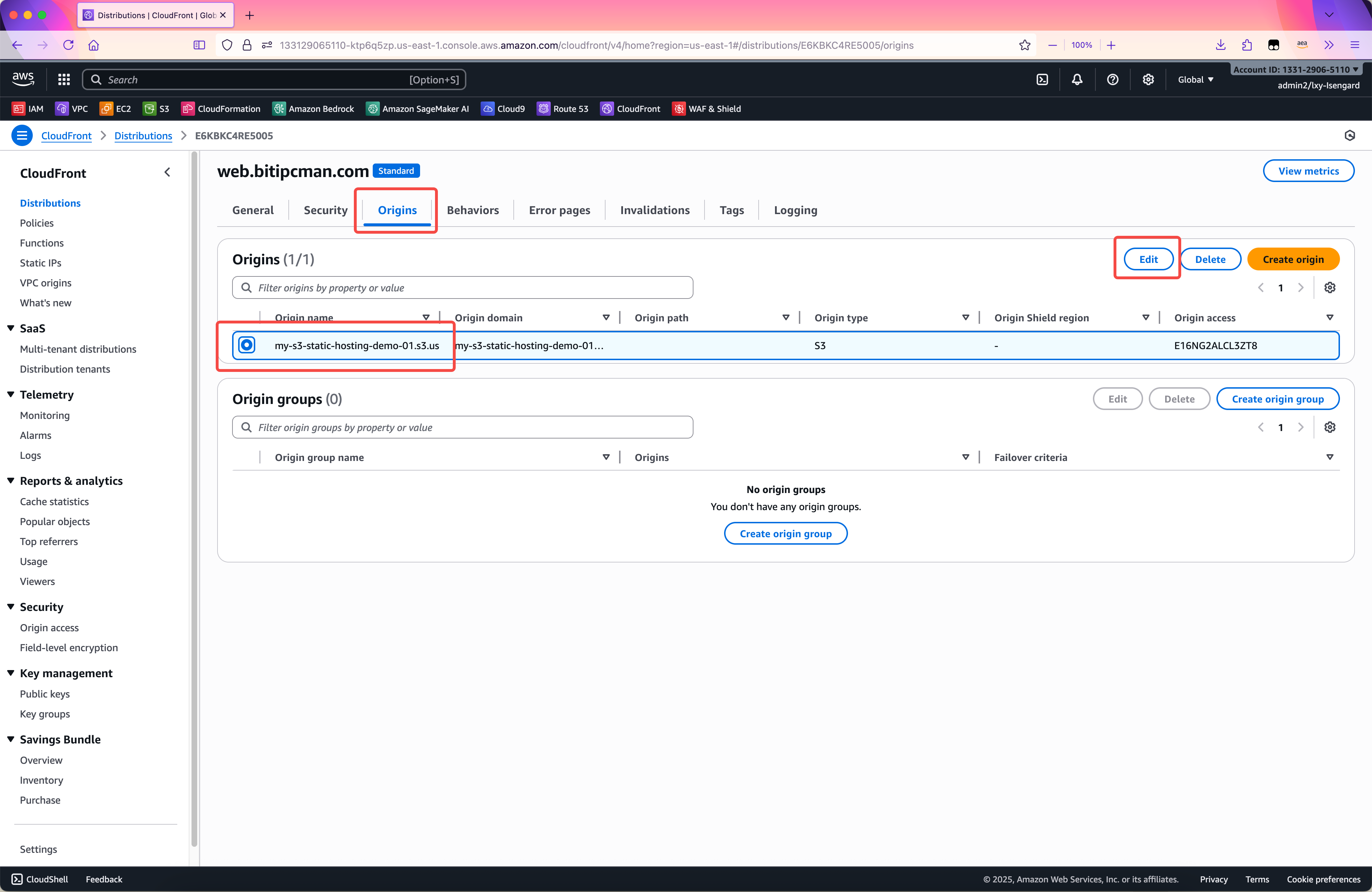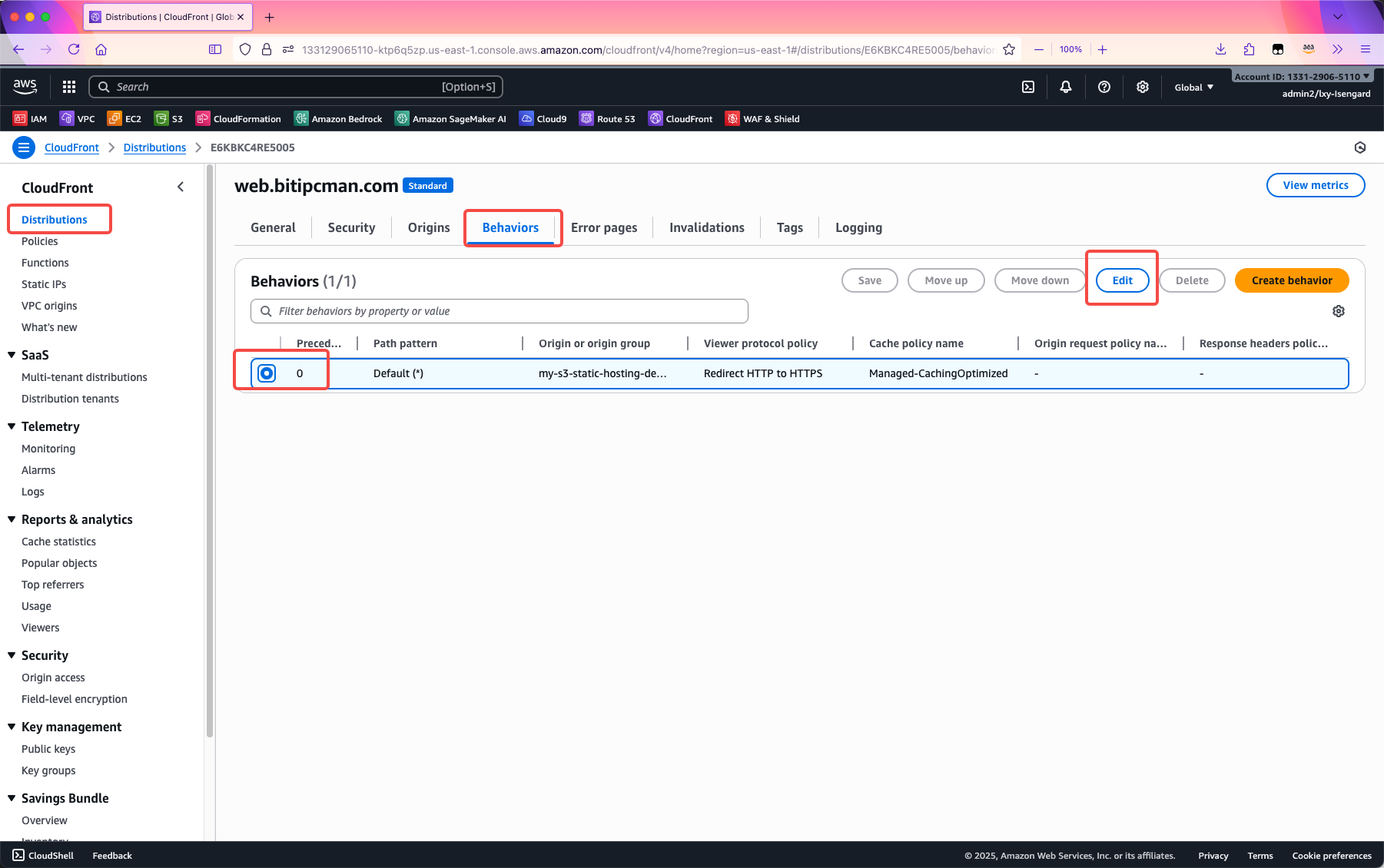 接下来配置CloudFront针对根目录的默认页。在创建好的发布点页面上,点击编辑按钮。如下截图。