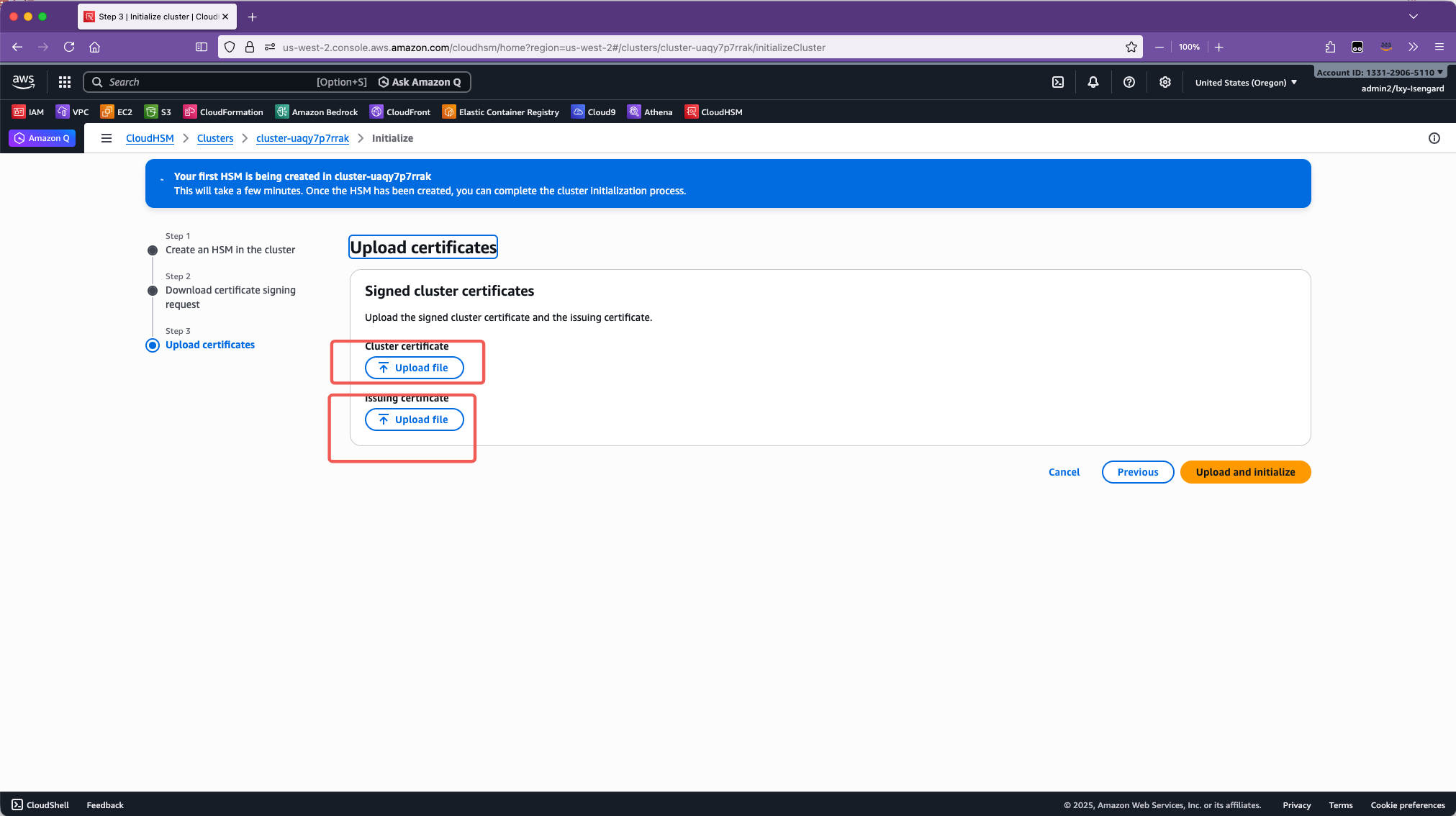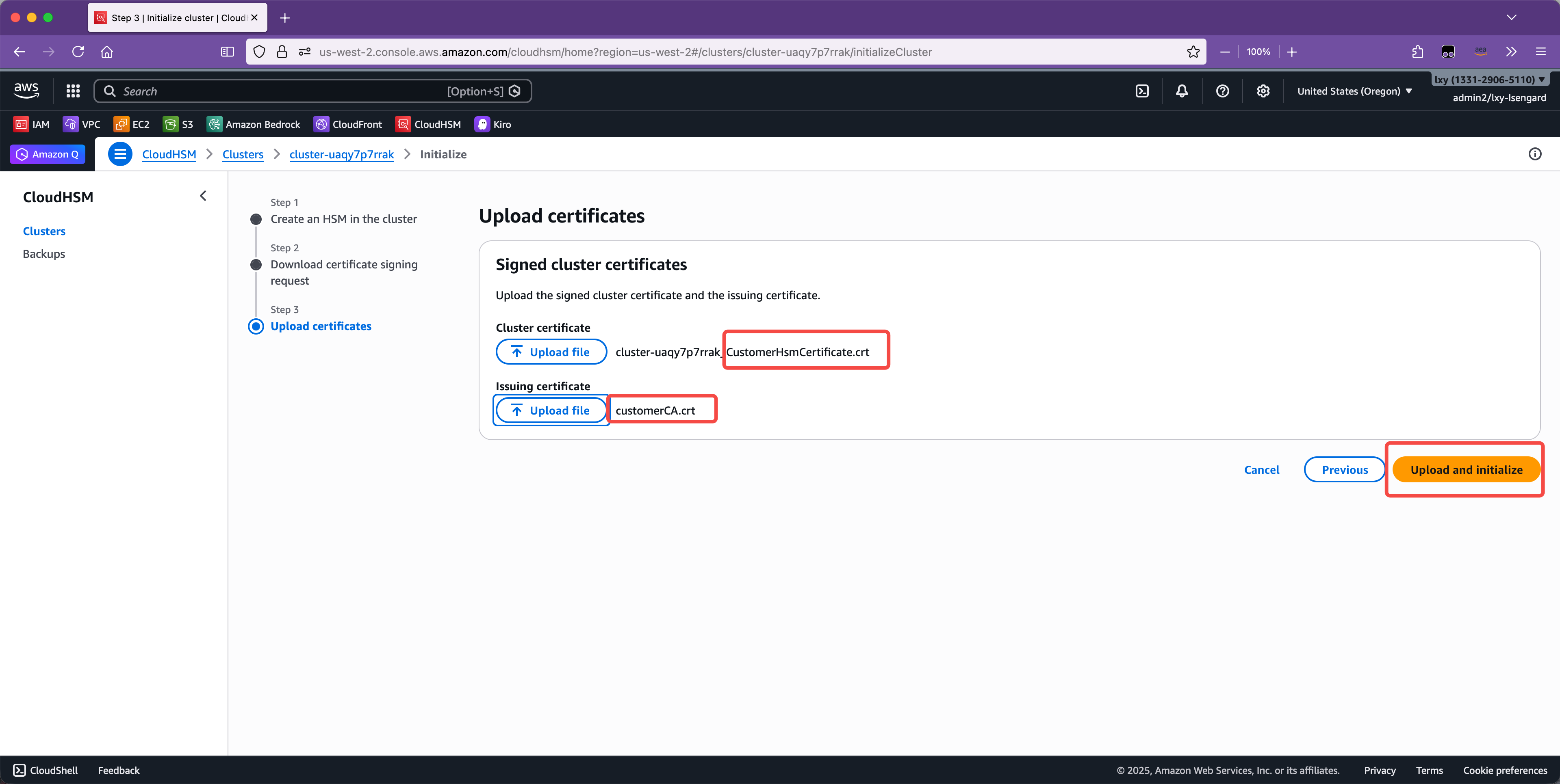 sudo cp customerCA.crt /opt/cloudhsm/etc/customerCA.crt