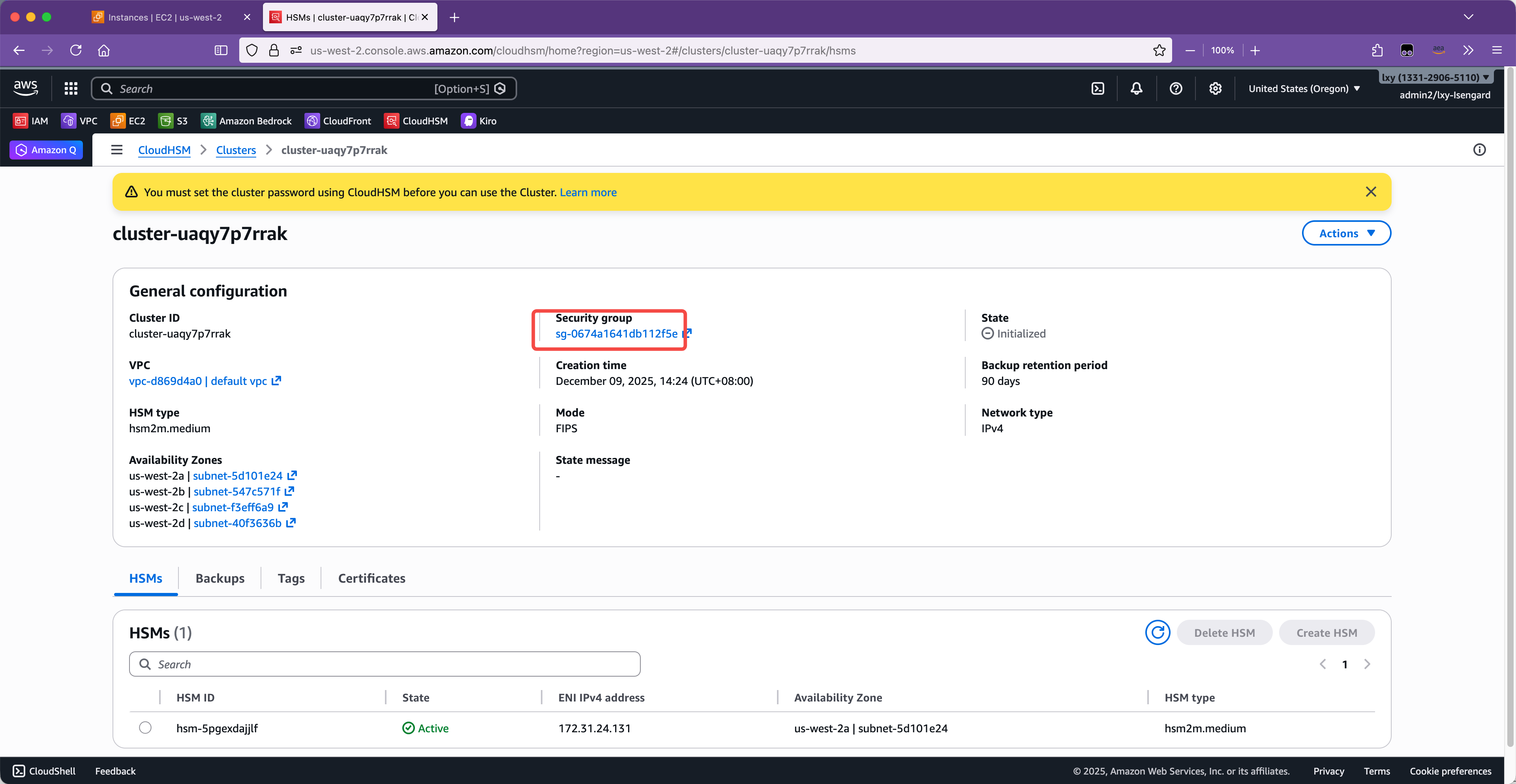 由此安装CloudHSM CLI的EC2就获得了网络权限可以操作CloudHSM了。