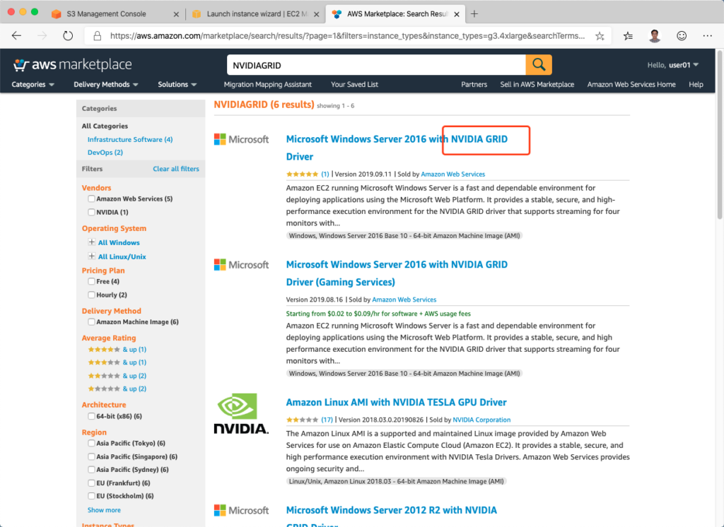 如下截图是通过海外的Market Place上,可以直接搜索到带Grid驱动的Windows镜像。