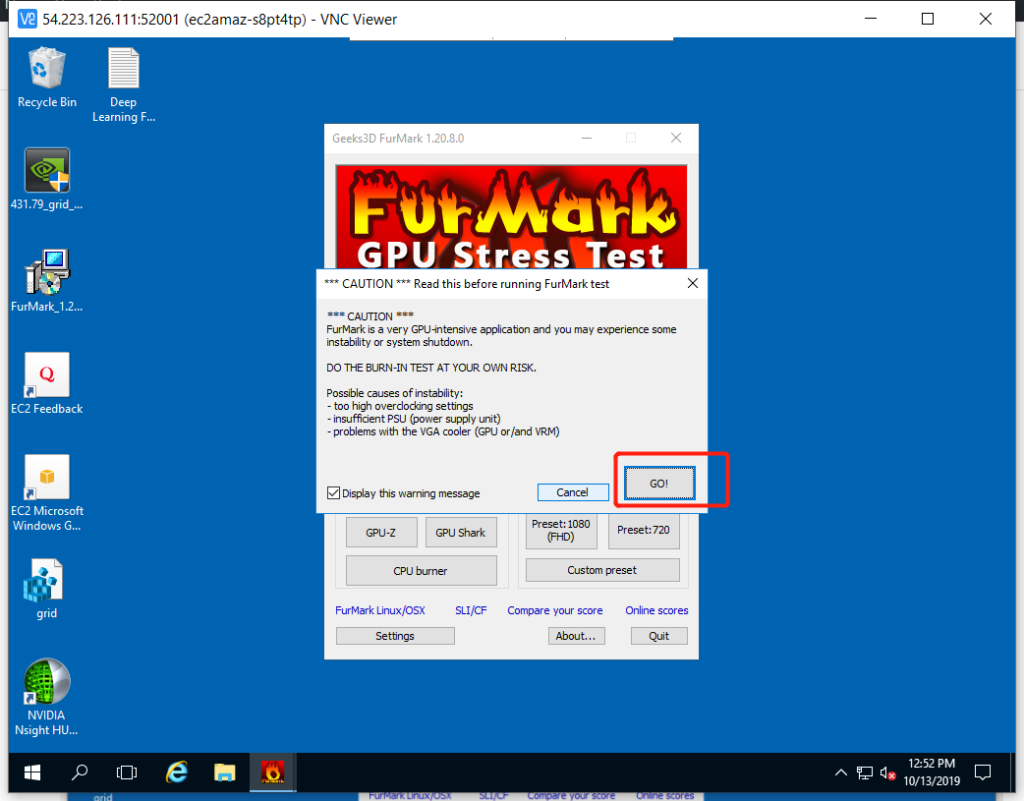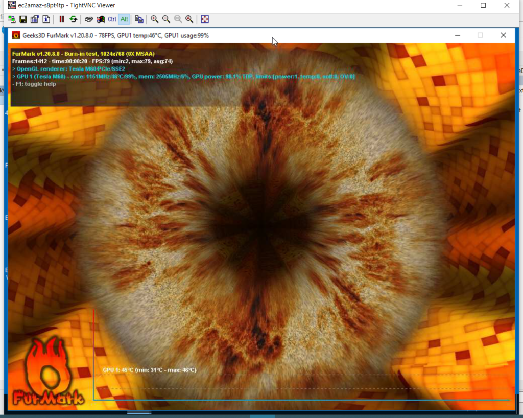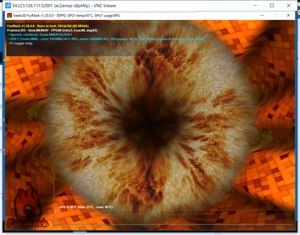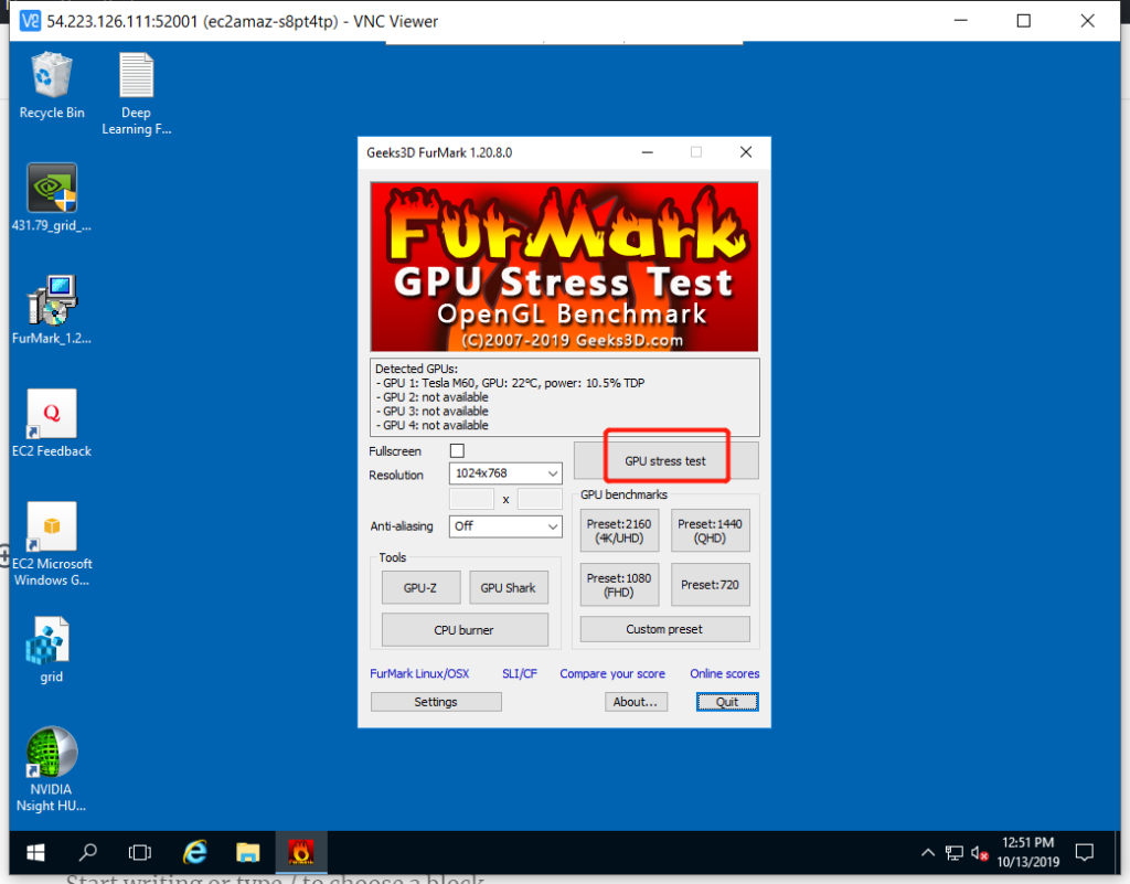 为了测试GPU是否工作正常,需要用至此3D程序的工具来测试。因为在Windows桌面2D是看不出来是否正常的。虽然在设备管理器中可以看到M60显卡,但并不意味着配置正确。