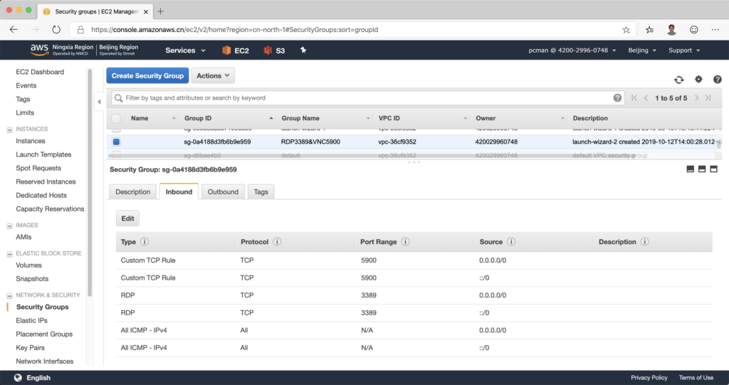 上文可选的配置做完了,请确认EC2实例的安全规则组放行了5900 TCP协议。