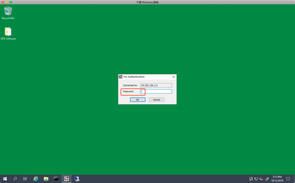 VNC认证步骤,输入安装VNC Server时候设定的VNC密码。注意:VNC自己的认证体系只有密码,没有用户名。