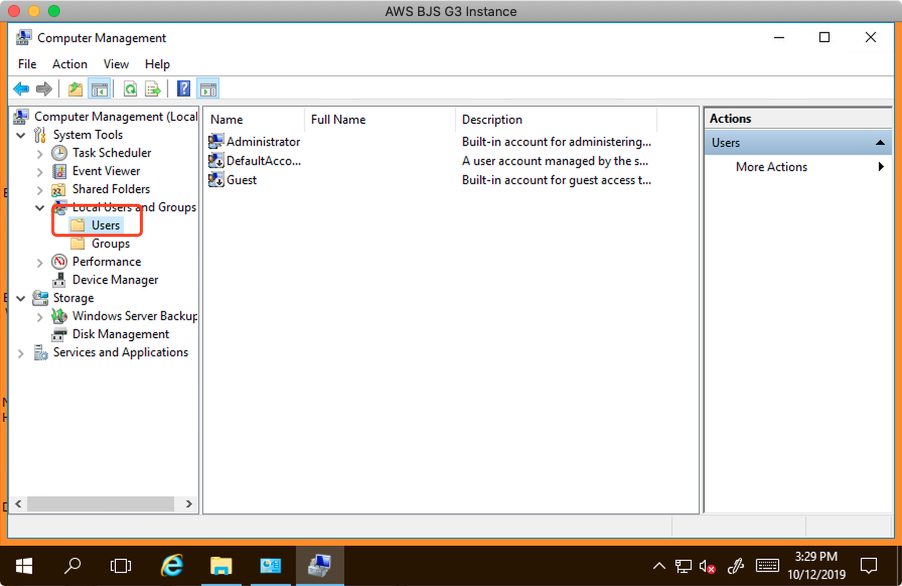 在左侧找到“Local User and Groups”用户管理,右侧可以看到,除了Administrator外,其他用户是禁用的。