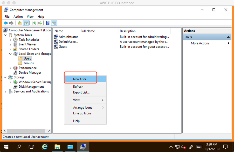 在空白处点击鼠标右键,选择“New User”。如下截图。