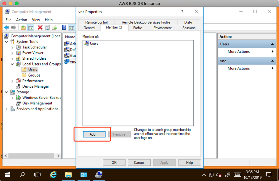 在弹出的对话框中,切换到第二个标签页“Member Of”,可以看到目前只列出了Users普通用户组。如下截图。