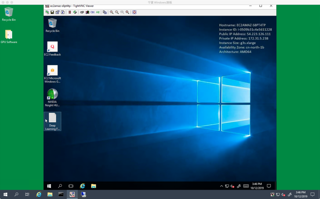 - 发起访问的VNC Client是一个T2实例(不带GPU),运行地点在AWS宁夏Region