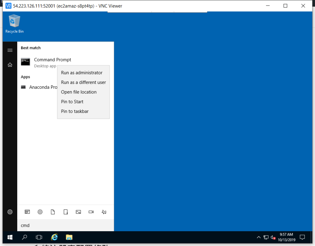 首先以管理员身份启动cmd命令行。方法是点击开始菜单后,输入cmd,然后对其点鼠标邮件,选择以管理员身份启动(Run as Administrator)。注意:这个步骤如果不是管理员身份,运行会报错。