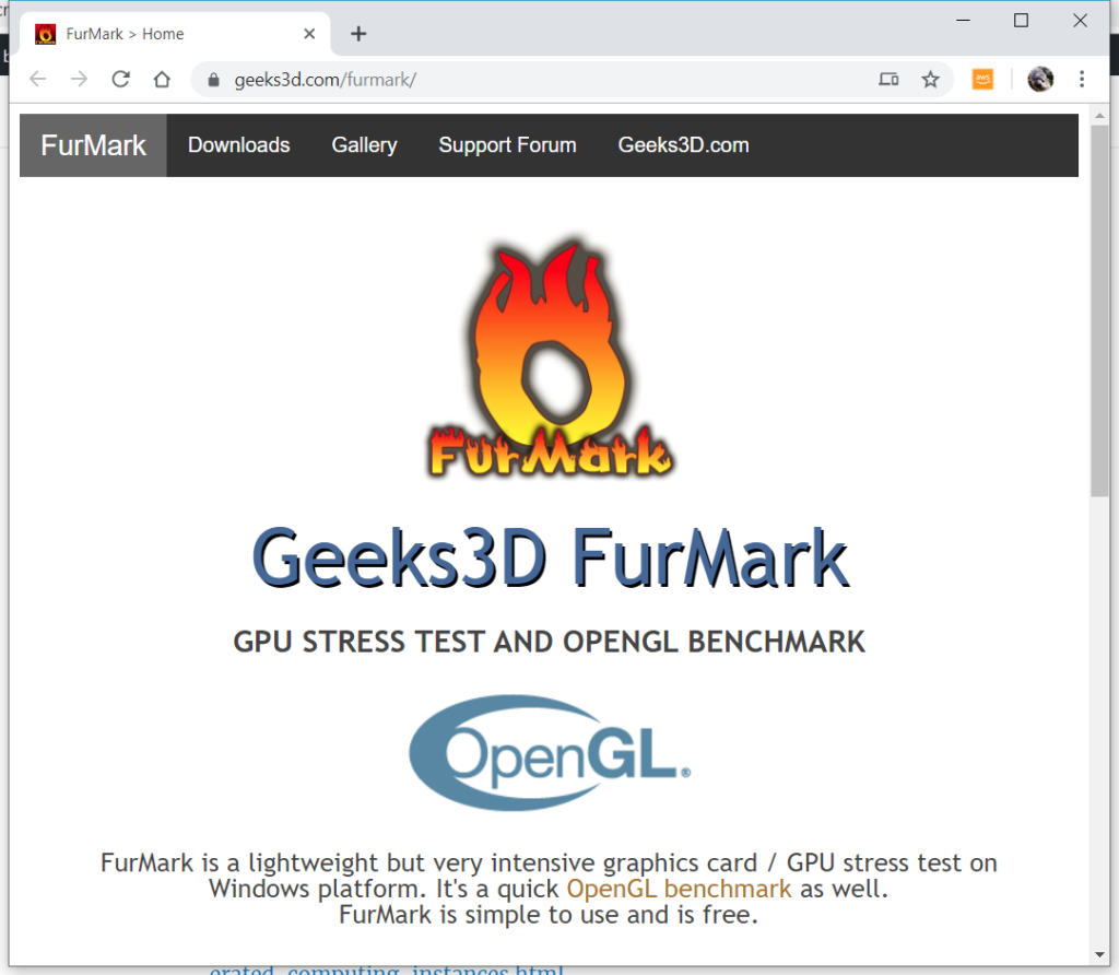 为了验证3D加速正常启用,现在要使用3D图形测试工具来调用CPU渲染图形。这里我们使用 Geeks3D FurMark 这款软件来测试。官网在这里。