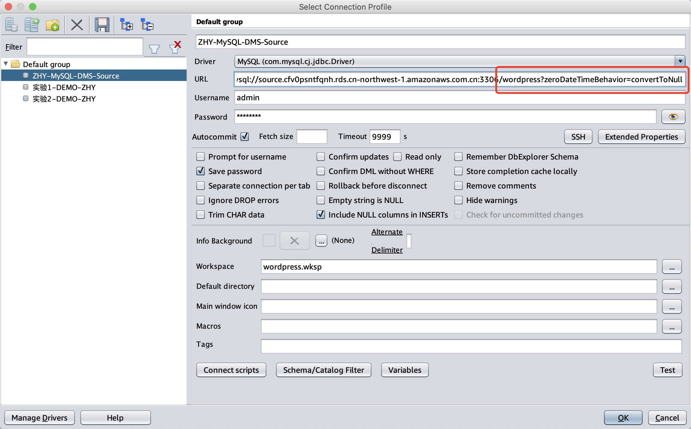 例如在SQLworkbenchJ上,增加如下参数