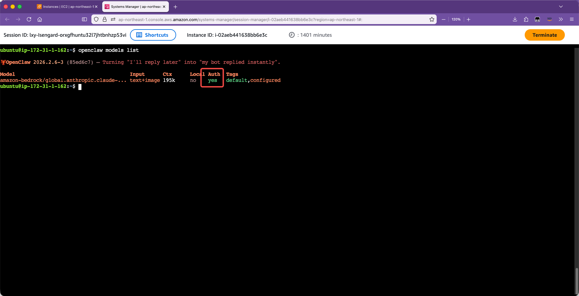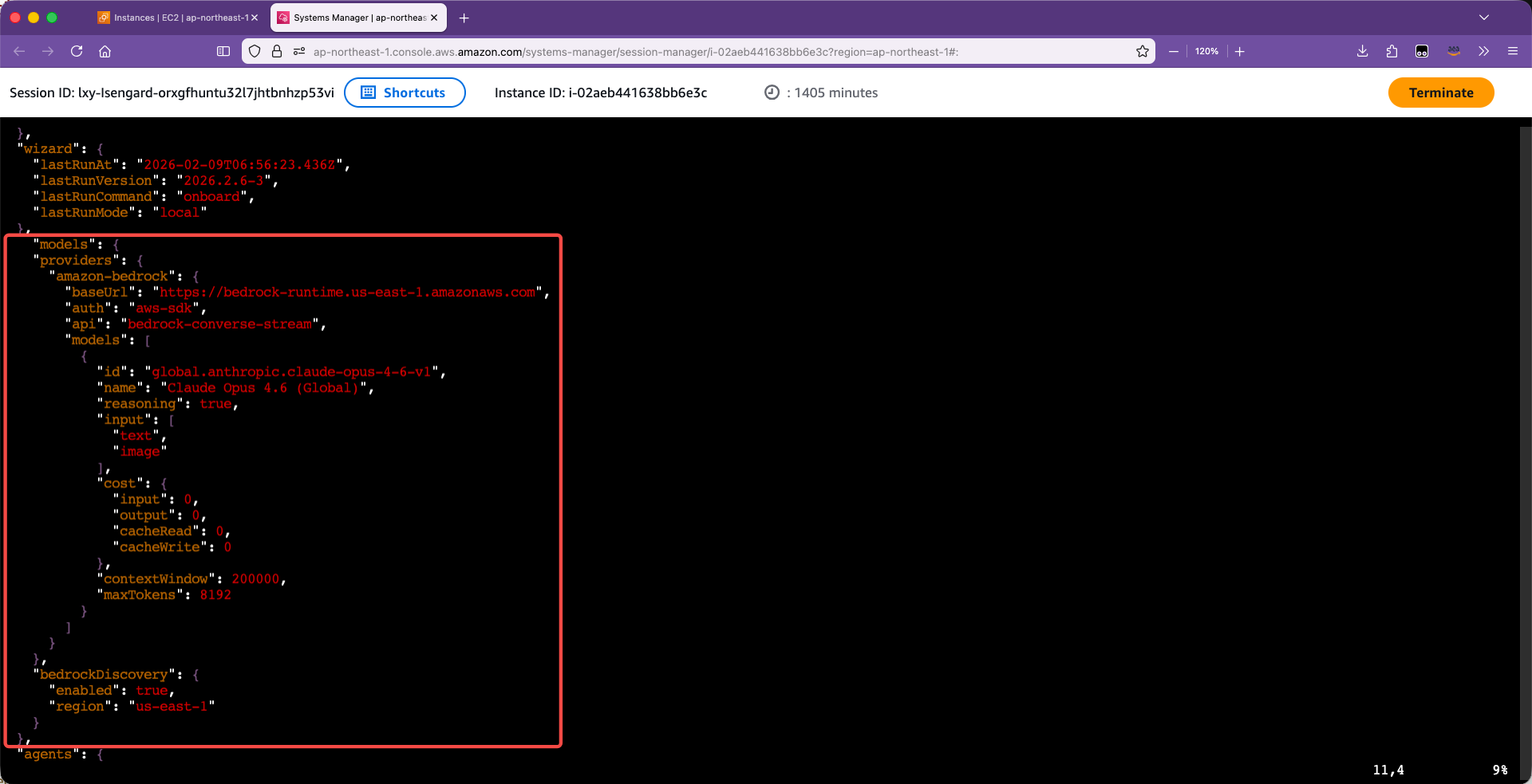 7、配置Bedrock的Access Key和Secret Key为Openclaw的模型供应商