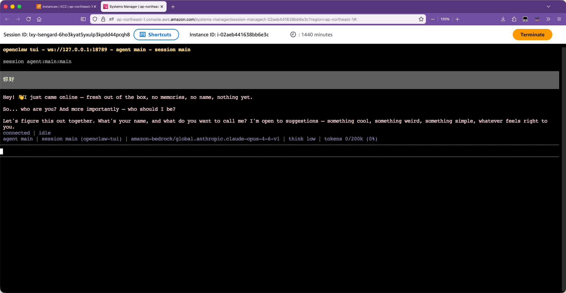 Openclaw是最近火起来的个人助手agent,经历了改名风波抛弃了Clawdbot/Moltbot的名字,正式定名Openclaw。最近网上有许多在Mac上部署Openclaw的文章,AWS官方公众号也发表了在海外AWS云上Mac Mini中部署Openclaw的方法。考虑到成本节约(钱包),这里不使用Mac Mini,本文介绍如何在AWS EC2 Linux上部署一个Openclaw,并通过飞书机器人实现与飞书对接,实现一个always在线的飞书助手。