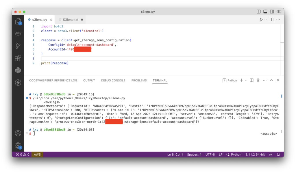 Python boto3 API调用Storage Lens配置