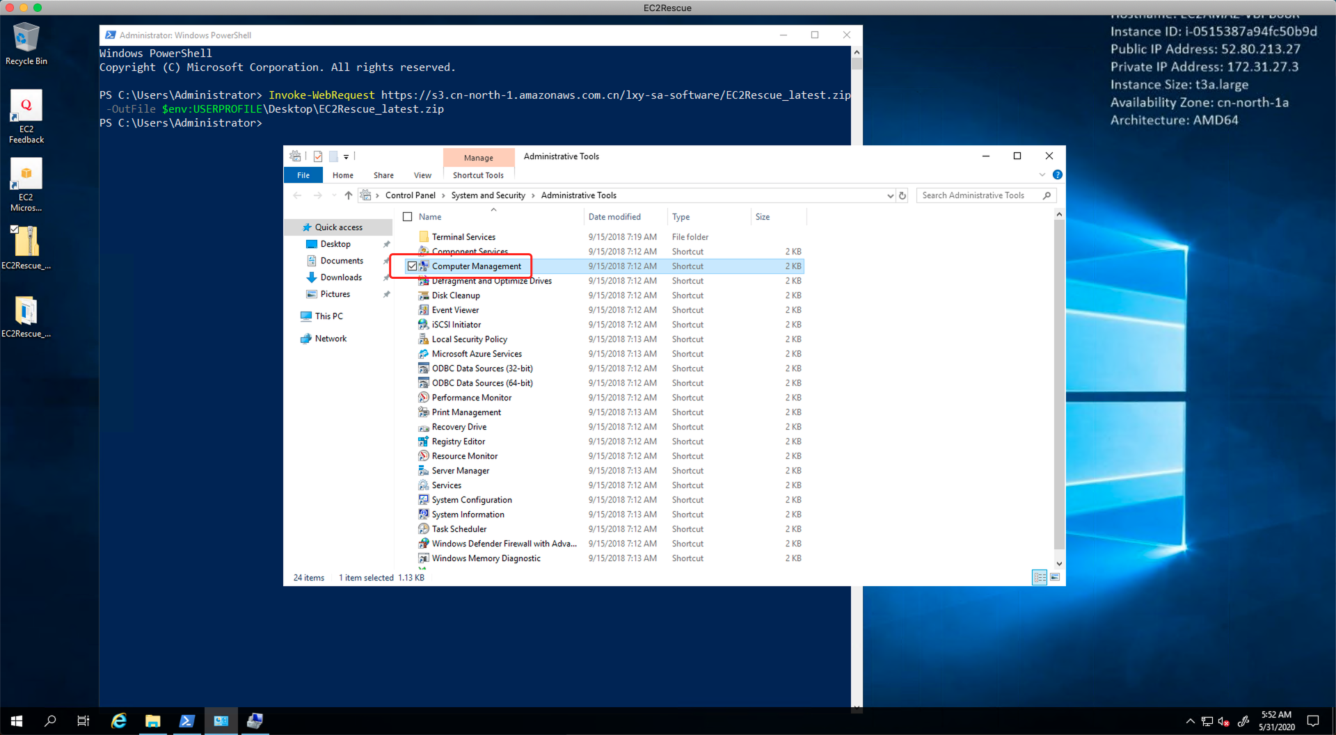 Invoke-WebRequest https://s3.cn-north-1.amazonaws.com.cn/lxy-sa-software/EC2Rescue_latest.zip -OutFile $env:USERPROFILE\Desktop\EC2Rescue_latest.zip