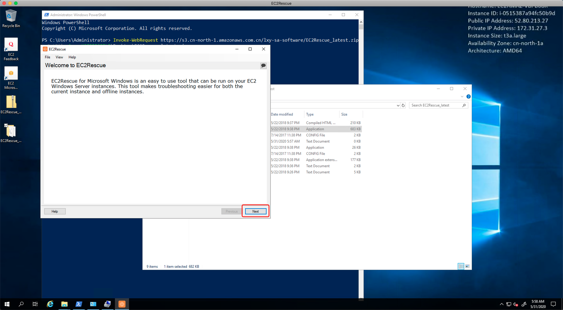 解压缩本文一开始下载的EC2Rescue.zip,获得一个文件夹,执行其中的可执行文件 EC2Rescue,如下截图。