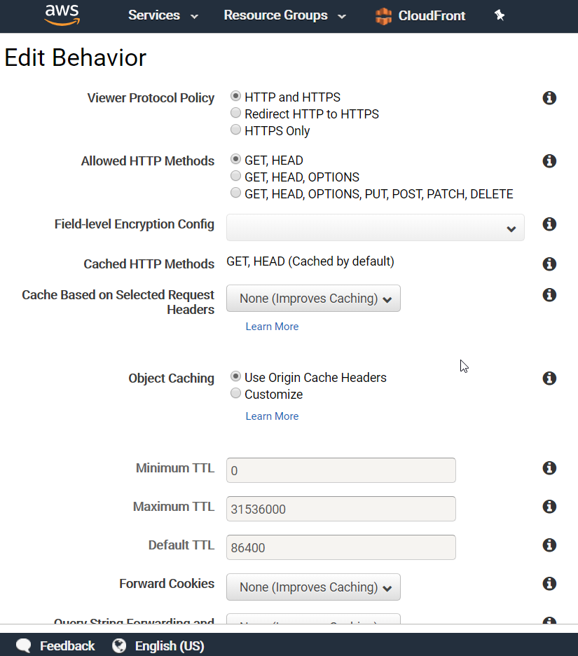 Cloudfront还有很多有趣的配置,可以详细控制CDN策略,如下截图。
