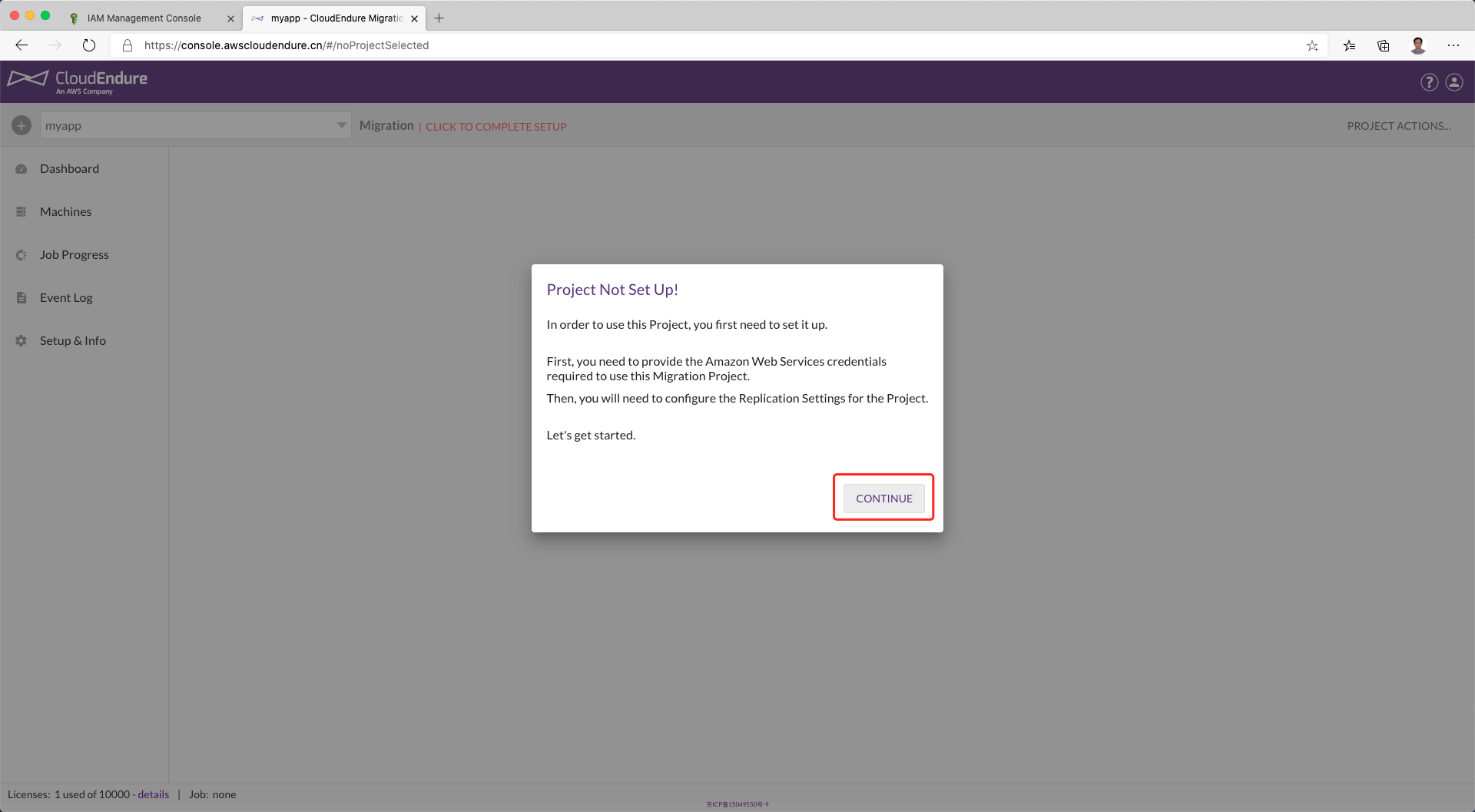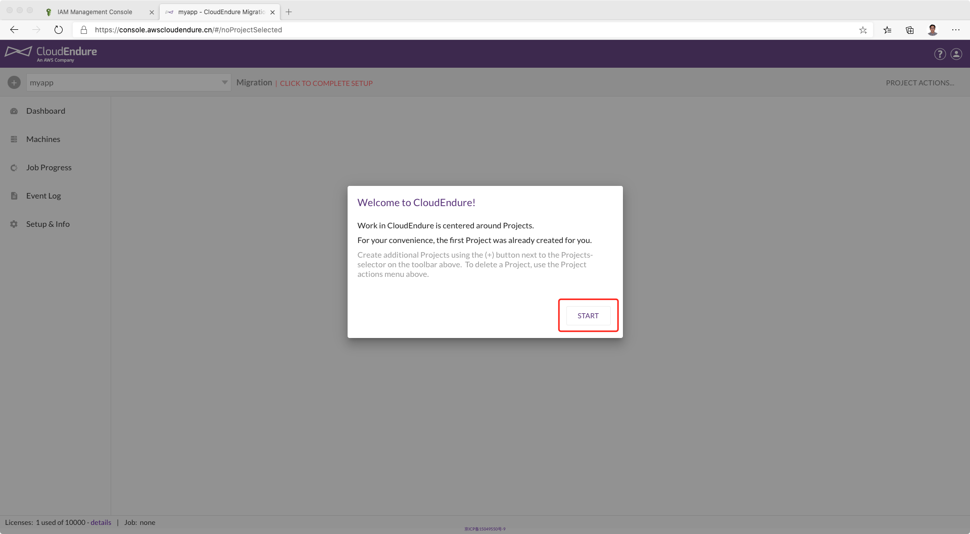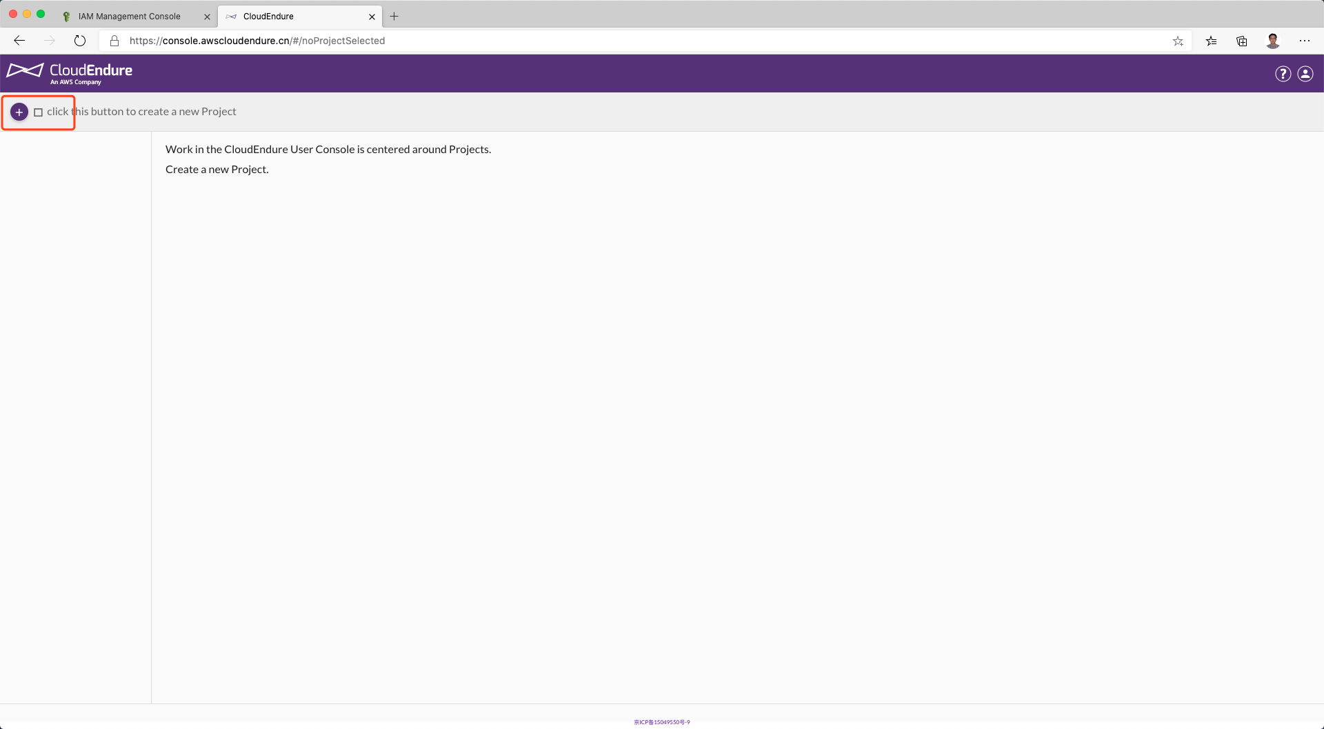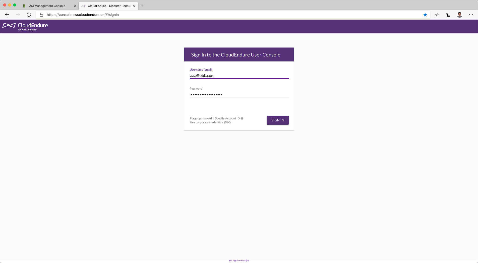 访问这里登录CloudEndure中国区域控制台。如下截图。