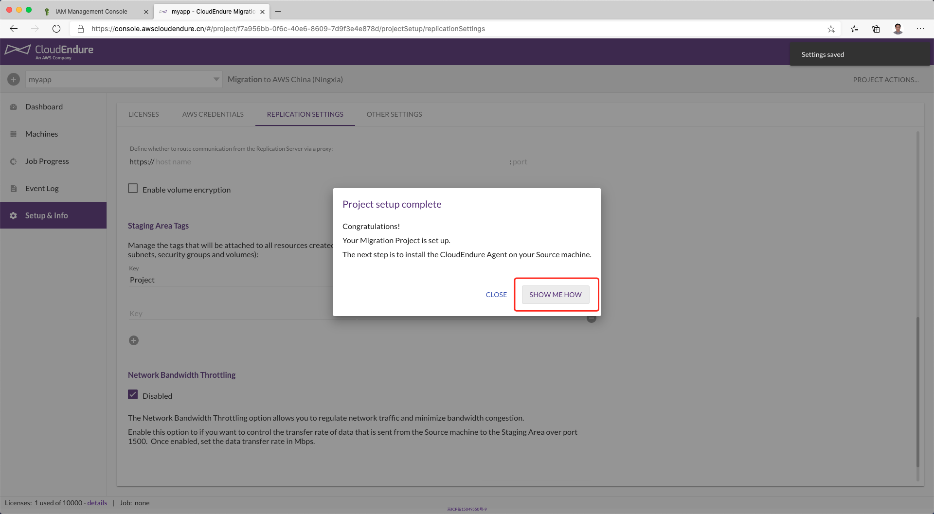 请妥善保存好API Key,稍后将在CloudEndure界面中使用。