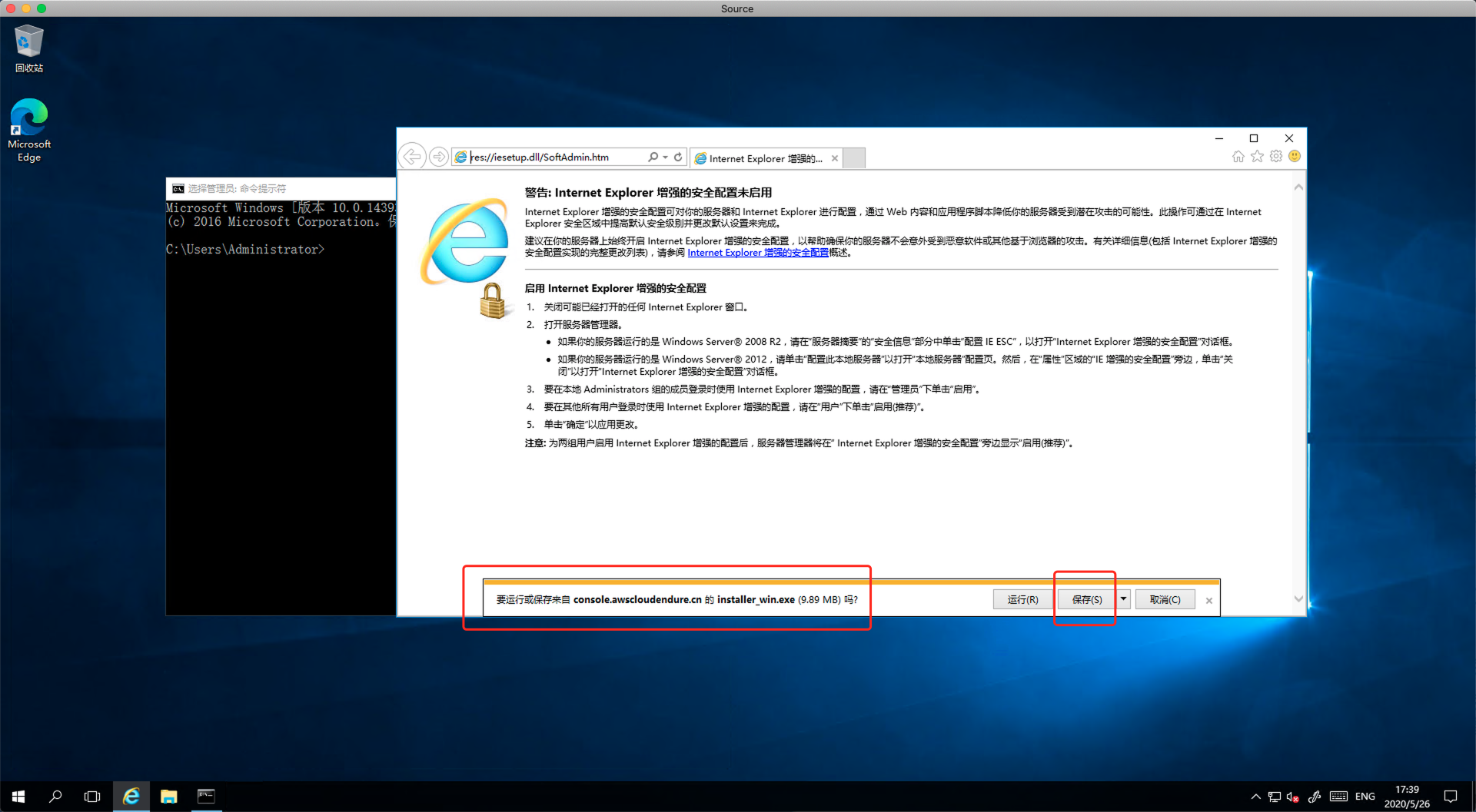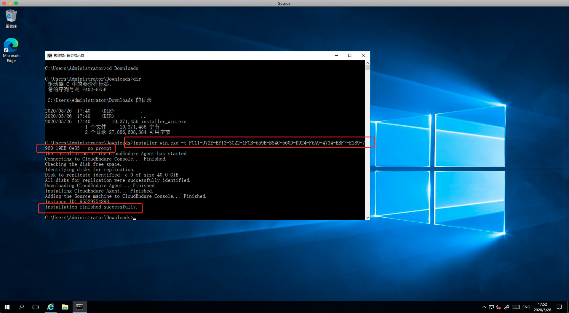 下载时候不要直接通过浏览器运行这个Agent,而是在命令行下运行。将前文Machine页面上提示的下载URL复制下来,在要迁移的Windows Server的命令行下运行。注意,需要以管理员权限执行。如下截图。